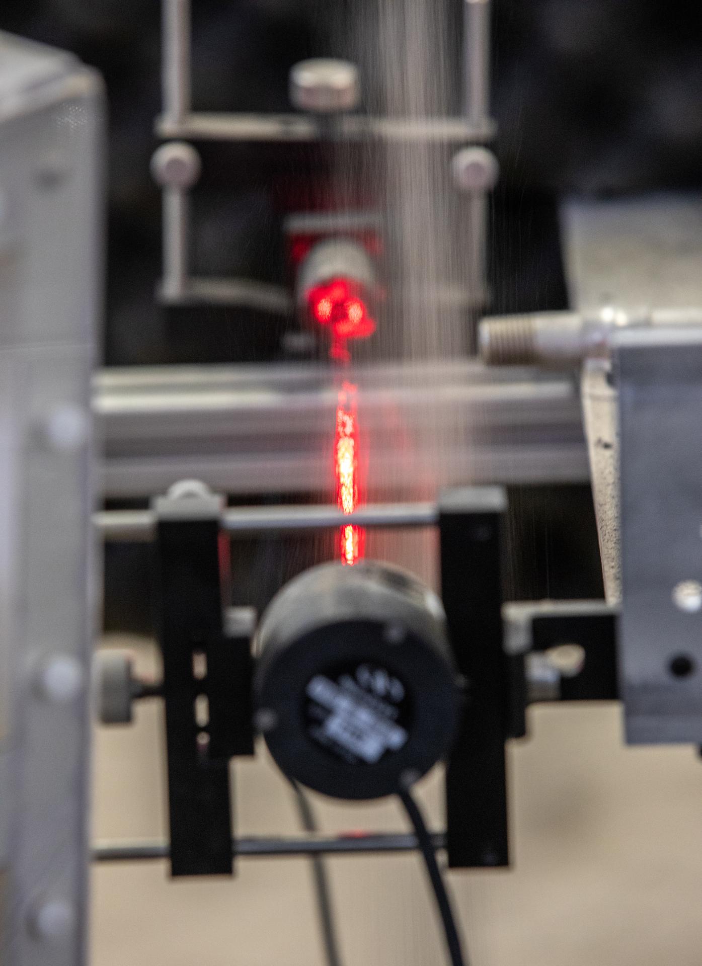 The Dust Concentration Monitor and the Millimeter Wave Doppler Radar undergo testing inside a regolith bin at the Granular Mechanics and Regolith Operations (GMRO) lab at the Kennedy Space Center’s Swamp Works on July 28, 2022, as part of Plume Surface Interaction (PSI) Instrumentation testing. The PSI Project is advancing both modeling and testing capabilities to understand exactly how rocket exhaust plumes affect a planetary landing site. This advanced modeling will help engineers evaluate the risks of various plumes on planetary surfaces, which will help them more accurately design landers for particular locations.