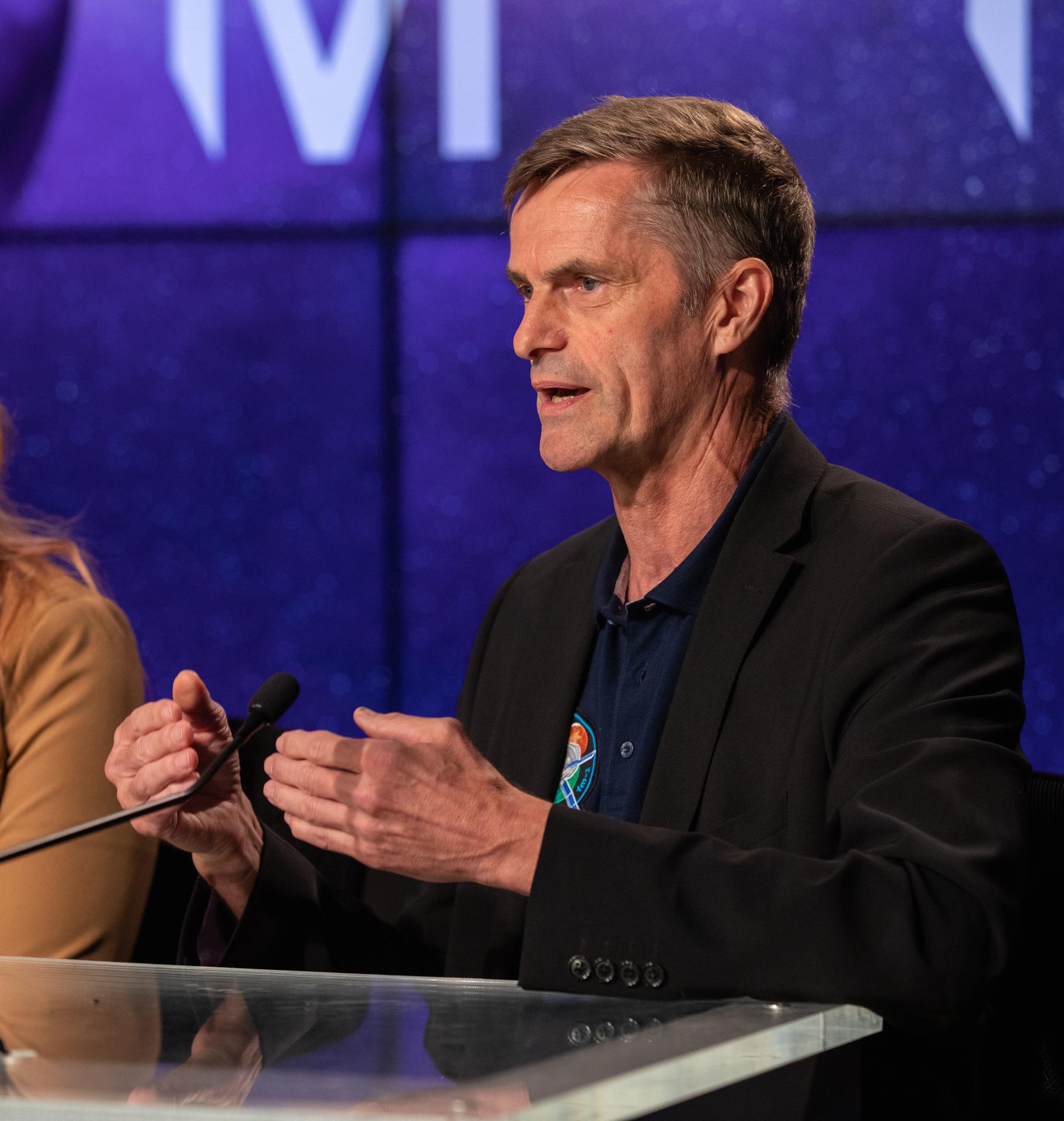 Ralf Zimmerman, head of Moon programs and Orion European Service Module, Airbus, participates in a prelaunch media briefing on the role of industry in advancing human exploration on Aug. 26, 2022, at NASA’s Kennedy Space Center in Florida, as the agency prepares for launch of Artemis I scheduled for Aug. 29, at 8:33 a.m. EDT from Kennedy’s Launch Complex 39B. The first in a series of increasingly complex missions, Artemis I will provide a foundation for human deep space exploration and demonstrate our commitment and capability to extend human presence to the Moon and beyond. The primary goal of Artemis I is to thoroughly test the integrated systems before crewed missions by operating the spacecraft in a deep space environment, testing Orion’s heat shield, and recovering the crew module after reentry, descent, and splashdown.