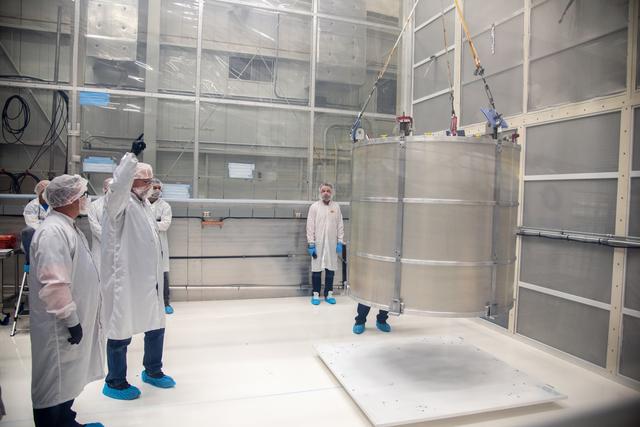 Technicians use a crane to lift the payload adapter separation systems canister for the Low-Earth Orbit Flight Test of an Inflatable Decelerator (LOFTID) as part of launch preparations inside Building 836 at Vandenberg Space Force Base (VSFB) in California on Sept. 1, 2022. The separation system canister loads into the payload adapter canister. The canister will go over the reentry vehicle.. LOFTID is the secondary payload on NASA and the National Oceanic and Atmospheric Administration’s (NOAA) Joint Polar Satellite System-2 (JPSS-2) satellite mission. JPSS-2 is the third satellite in the Joint Polar Satellite System series. It is scheduled to lift off from VSFB on Nov. 1 from Space Launch Complex-3. JPSS-2, which will be renamed NOAA-21 after reaching orbit, will join a constellation of JPSS satellites that orbit from the North to the South pole, circling Earth 14 times a day and providing a full view of the entire globe twice daily. The LOFTID is dedicated to the memory of Bernard Kutter. LOFTID will demonstrate inflatable heat shield technology that could enable a variety of proposed NASA missions to destinations such as Mars, Venus, and Titan, as well as returning heavier payloads from low-Earth orbit.