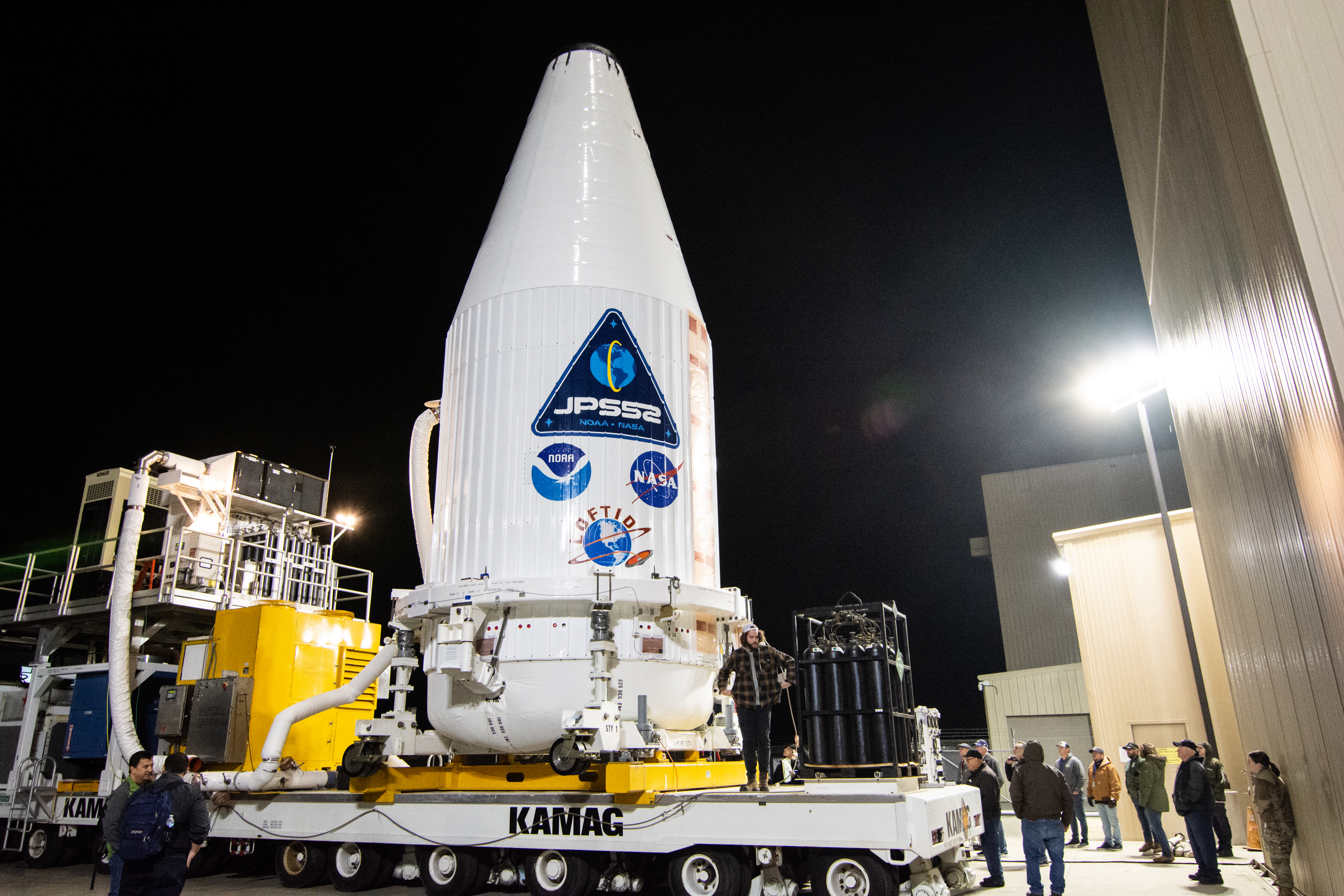 The United Launch Alliance Atlas V payload fairing containing the National Oceanic and Atmospheric Administration’s (NOAA) Joint Polar Satellite System-2 (JPSS-2) begins its journey to the vertical integration facility at Space Launch Complex 3 at Vandenberg Space Force Base (VSFB) in California on Oct. 18, 2022. Inside the fairing, JPSS-2 is stacked atop NASA’s Low-Earth Orbit Flight Test of an Inflatable Decelerator (LOFTID) secondary payload. JPSS-2 is the third satellite in the Joint Polar Satellite System series. It is scheduled to lift off from VSFB on Nov. 1 from SLC-3. JPSS-2, which will be renamed NOAA-21 after reaching orbit, will join a constellation of JPSS satellites that orbit from the North to the South pole, circling Earth 14 times a day and providing a full view of the entire globe twice daily. The NOAA/NASA Suomi National Polar-orbiting Partnership (Suomi NPP) satellite, and NOAA-20, previously known as JPSS-1, are both already in orbit. Each satellite carries at least four advanced instruments to measure weather and climate conditions on Earth. LOFTID is dedicated to the memory of Bernard Kutter. LOFTID will demonstrate inflatable heat shield technology that could enable a variety of proposed NASA missions to destinations such as Mars, Venus, and Titan, as well as returning heavier payloads from low-Earth orbit.