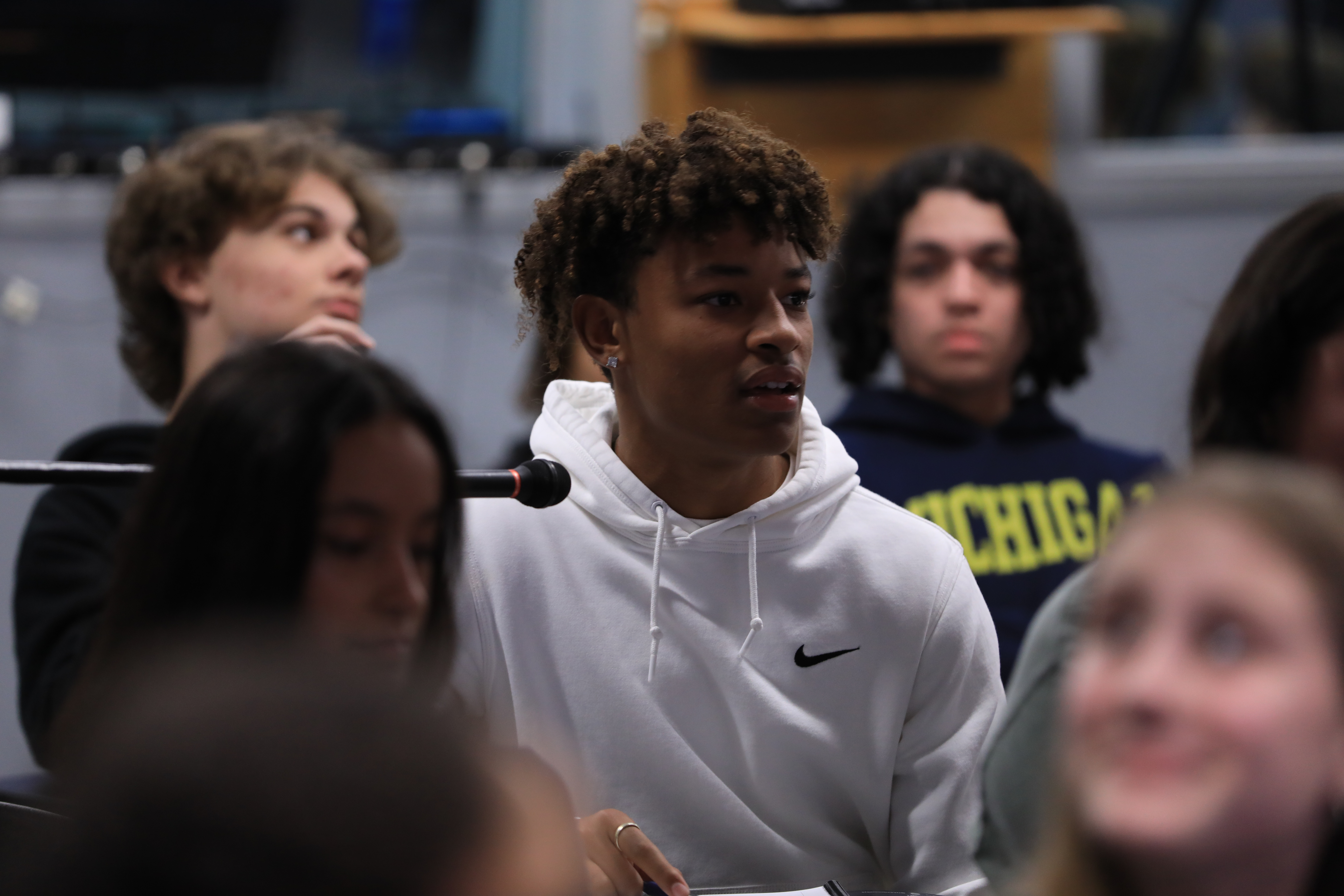 As part of NASA’s NextGen STEM project, students from Florida’s St. Cloud High School and Storm Grove Middle School in Vero Beach participate in an Artemis I student media briefing inside the John Holliman Auditorium of the News Center at NASA’s Kennedy Space Center in Florida on Jan. 19, 2023. Along with the students participating in person, middle and high school students across the country had the opportunity to ask questions of the panel via phone to discuss the Artemis I mission and the agency’s future of human space exploration.