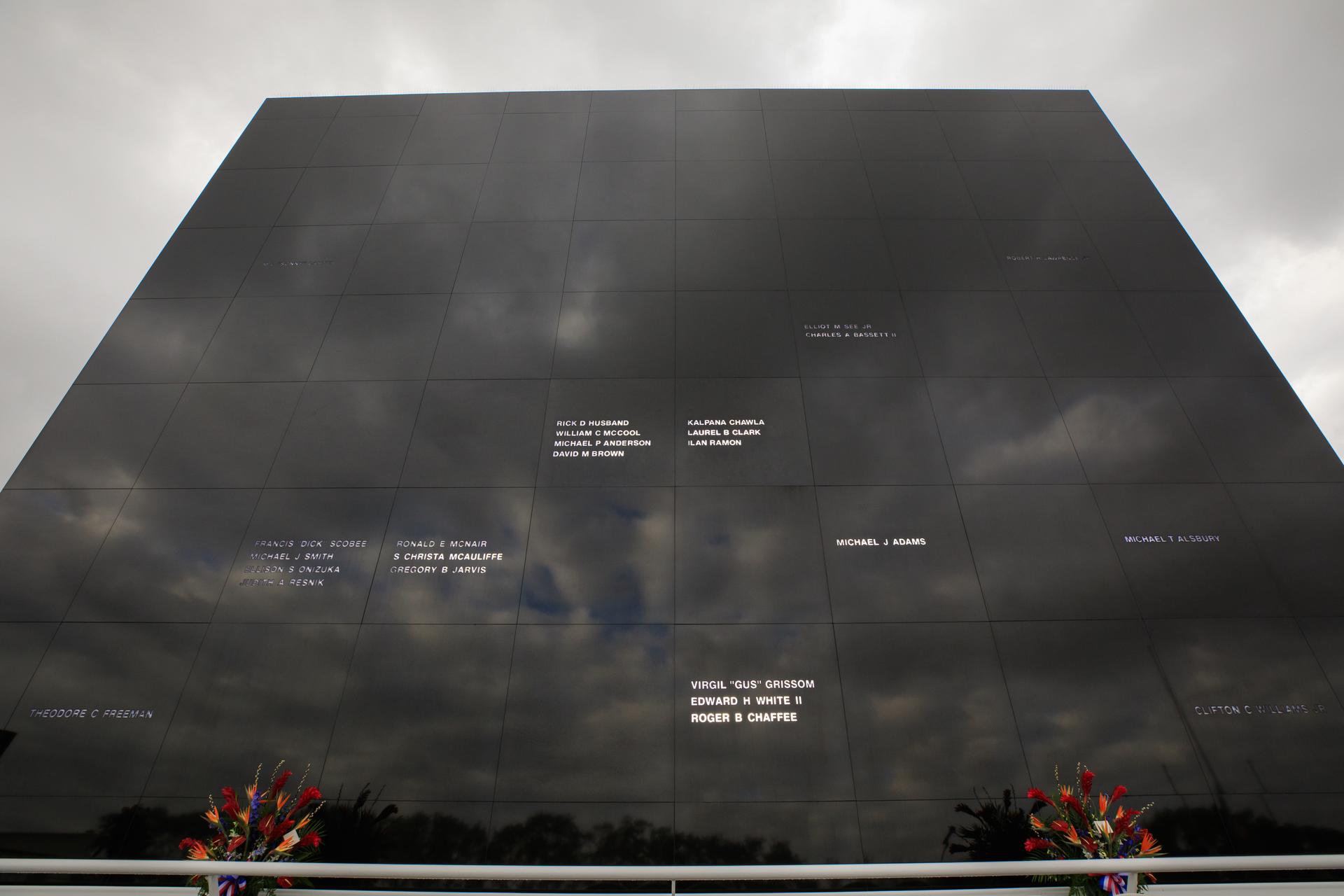 The Space Mirror Memorial is in view before the start of the Day of Remembrance ceremony at the Kennedy Space Center Visitor Complex in Florida on Jan. 26, 2023. The event honored the crews of Apollo 1 and space shuttles Challenger and Columbia, as well as other astronauts who lost their lives in the pursuit of spaceflight. This year marks the 20th anniversary of the Columbia tragedy. This year’s ceremony was hosted by the Astronauts Memorial Foundation, which was founded after the shuttle Challenger accident in 1986 to honor the sacrifices of fallen astronauts each year.