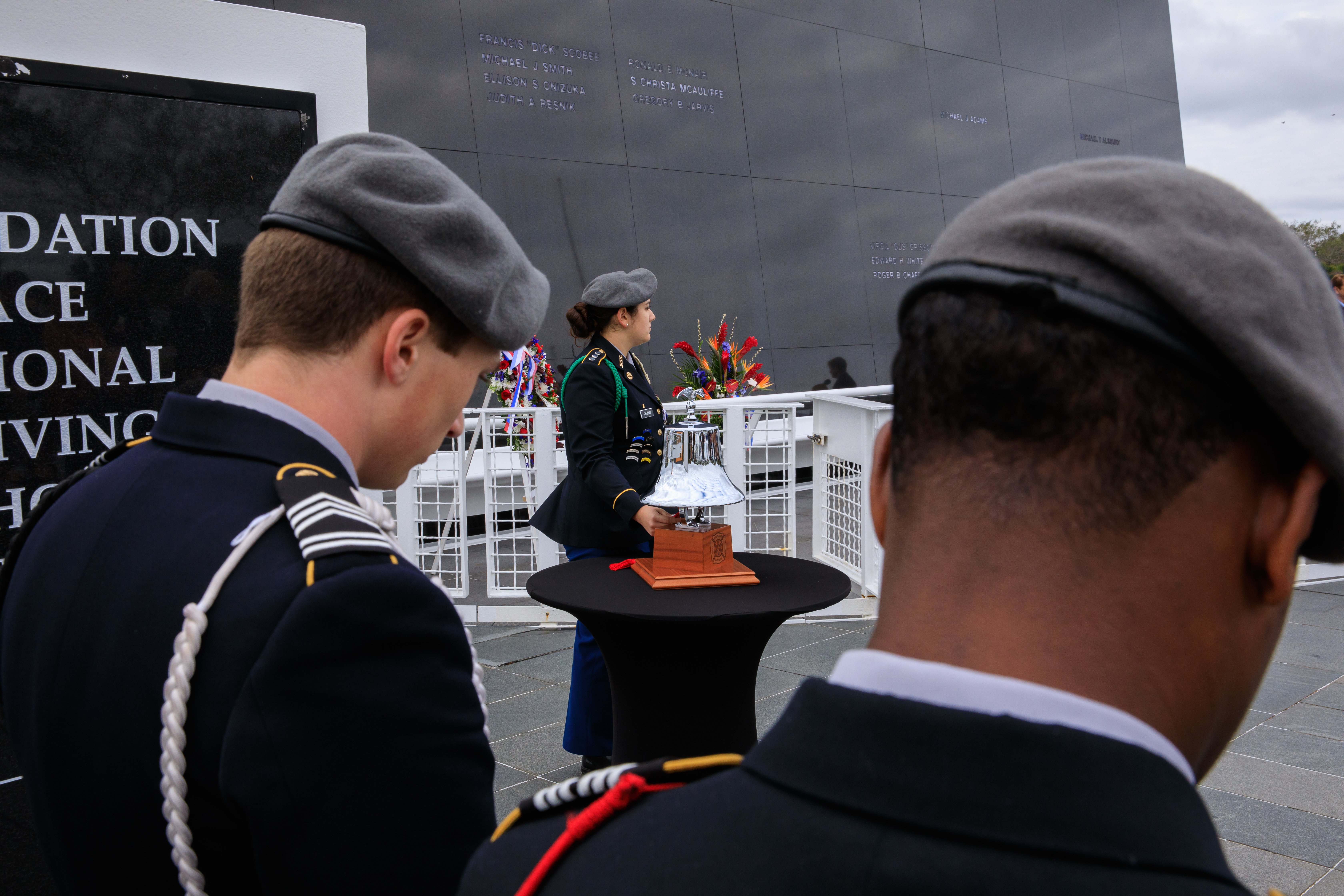 Members of the Viera High School JROTC Honor Guard observe a minute of silence during the Day of Remembrance ceremony at the Kennedy Space Center Visitor Complex in Florida on Jan. 26, 2023. The event honored the crews of Apollo 1 and space shuttles Challenger and Columbia, as well as other astronauts who lost their lives in the pursuit of spaceflight. This year marks the 20th anniversary of the Columbia tragedy. This year’s ceremony was hosted by the Astronauts Memorial Foundation, which was founded after the shuttle Challenger accident in 1986 to honor the sacrifices of fallen astronauts each year.