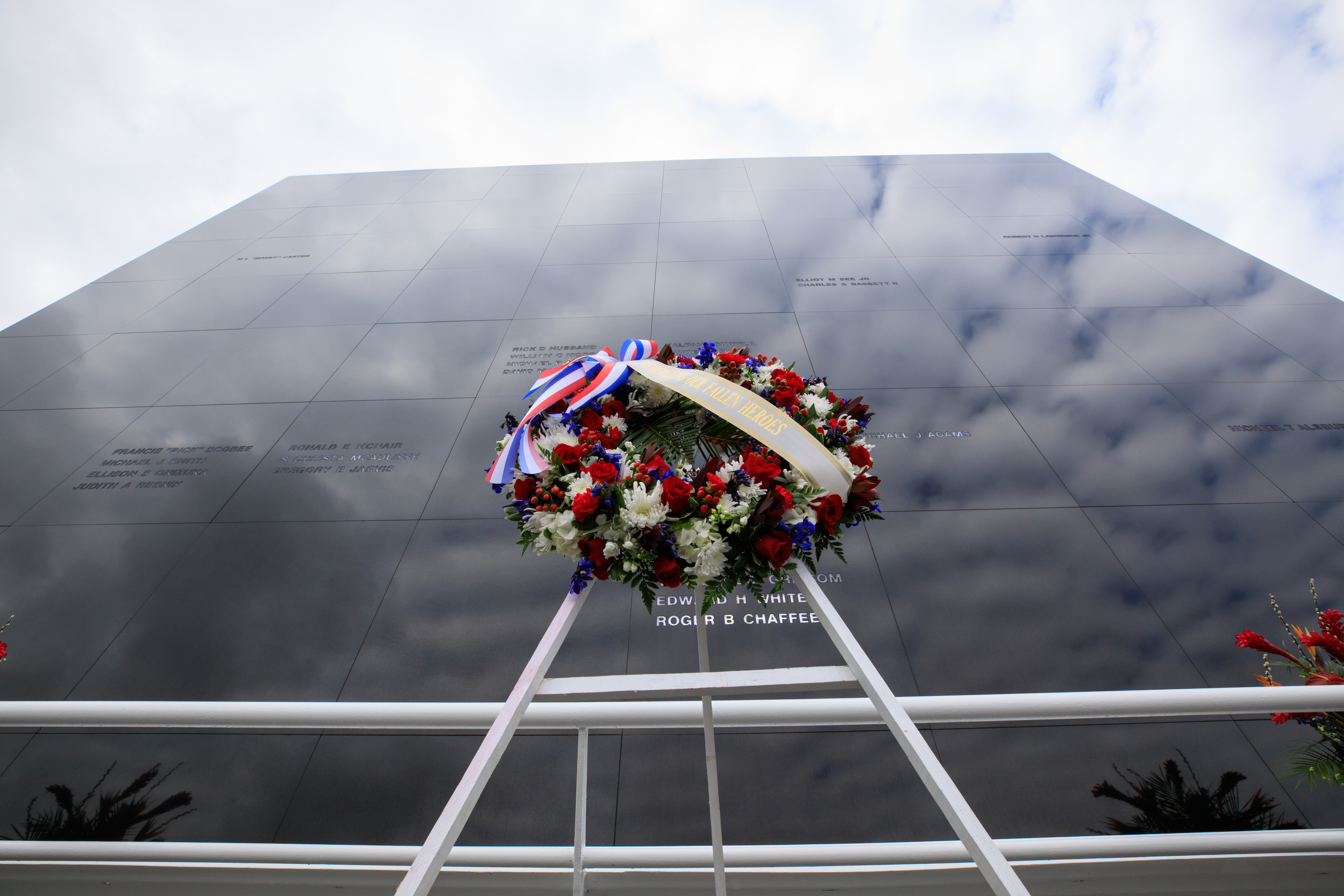 A wreath has been placed in front of the Space Mirror Memorial during the Day of Remembrance ceremony at the Kennedy Space Center Visitor Complex in Florida on Jan. 26, 2023. The event honored the crews of Apollo 1 and space shuttles Challenger and Columbia, as well as other astronauts who lost their lives in the pursuit of spaceflight. This year marks the 20th anniversary of the Columbia tragedy. This year’s ceremony was hosted by the Astronauts Memorial Foundation, which was founded after the shuttle Challenger accident in 1986 to honor the sacrifices of fallen astronauts each year.