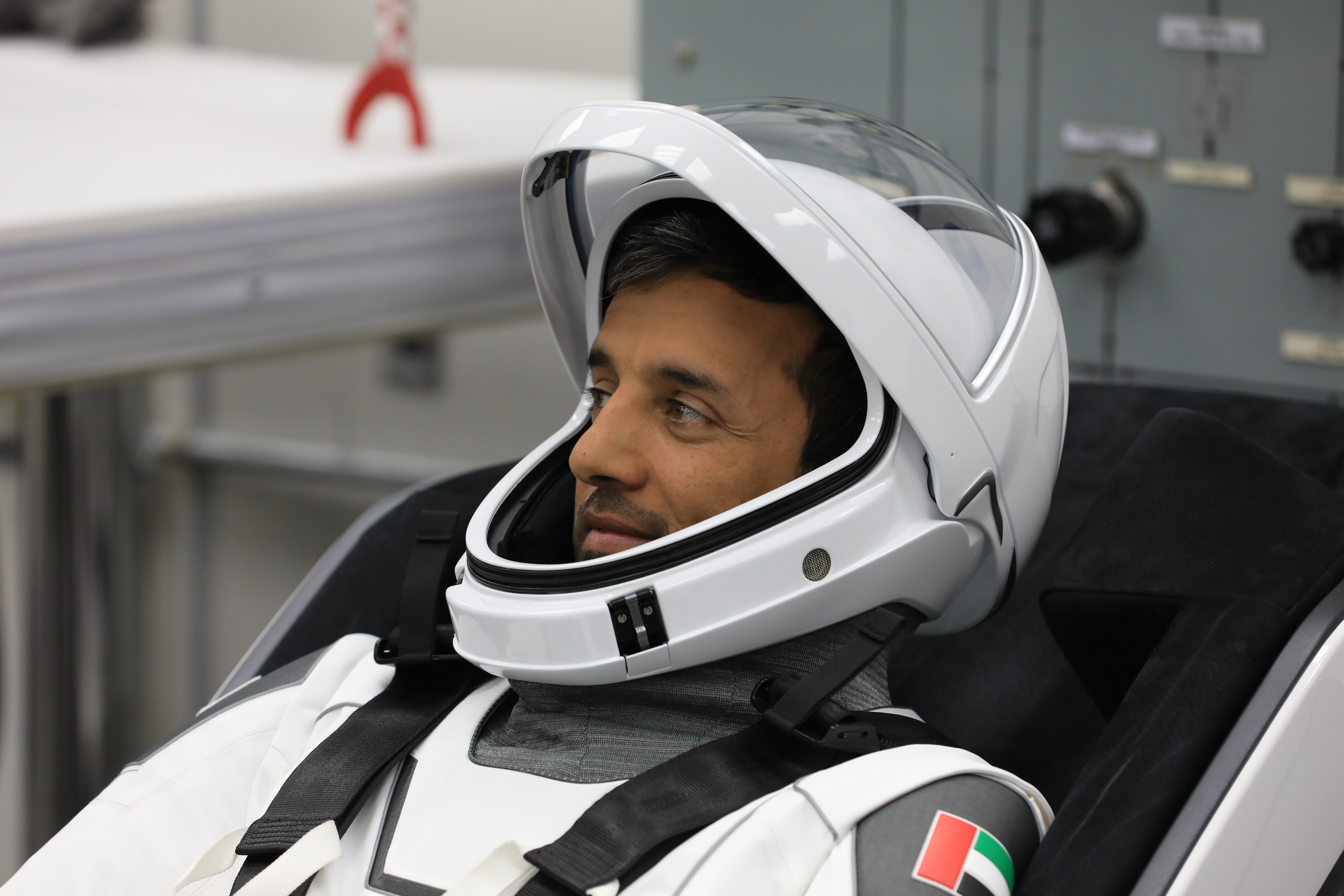 NASA’s SpaceX Crew-6 crewmember Sultan Alneyadi, UAE (United Arab Emirates) astronaut and mission specialist, is in his SpaceX spacesuit in the crew suit-up room inside the Neil Armstrong Operations and Checkout Building at NASA’s Kennedy Space Center in Florida on Feb. 26, 2023. He and his crewmates are preparing for their launch to the International Space Station aboard SpaceX’s Dragon spacecraft atop the Falcon 9 rocket. Launch was targeted for 1:45 a.m. EST on Feb. 27 from Launch Complex 39A, but was scrubbed for the day. Crew-6 is the sixth crew rotation mission with SpaceX to the station, and the seventh flight of Dragon with people as part of the agency’s Commercial Crew Program.