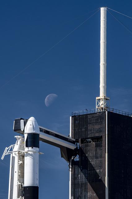 Seen here is a up-close view of the SpaceX Dragon spacecraft atop the company’s Falcon 9 rocket in the vertical position at NASA’s Kennedy Space Center in Florida on March 14, 2023, in preparation for the 27th commercial resupply services launch to the International Space Station. The mission will deliver new science investigations, supplies, and equipment to the crew aboard the space station, including the final two experiments comprising the National Institutes for Health and International Space Station National Laboratory’s Tissue Chips in Space initiative, Cardinal Heart 2.0 and Engineered Heart Tissues-2. Liftoff is scheduled for 8:30 p.m. EDT on Tuesday, March 14, from Kennedy’s Launch Complex 39A.