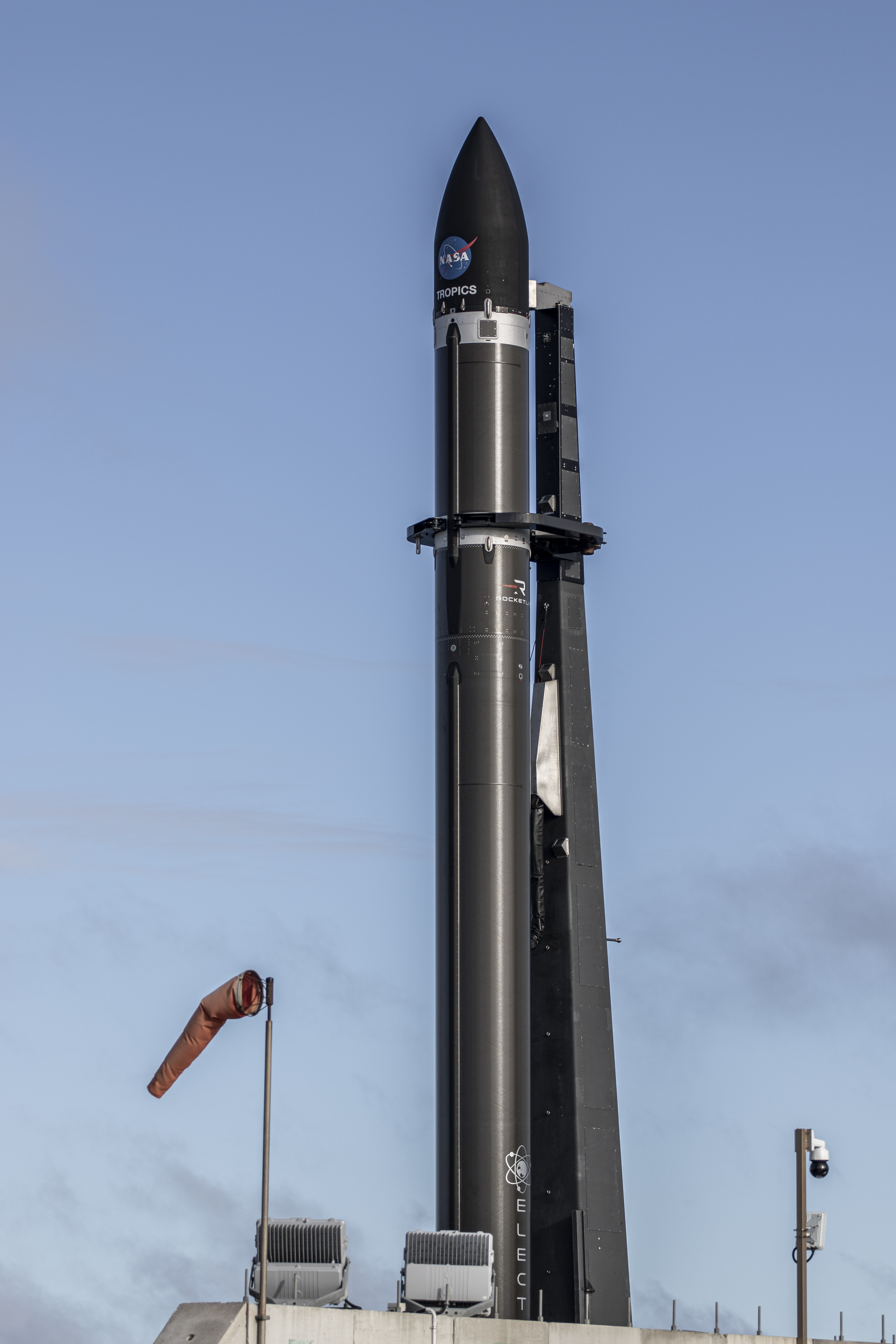 A Rocket Lab Electron rocket is poised for launch atop Pad B, Launch Complex 1, in Māhia, New Zealand. Launch time is May 8 at 1 p.m. New Zealand time (May 7 at 9 p.m. EDT). The Electron rocket is carrying two NASA CubeSats designed to study tropical cyclones, including hurricanes and typhoons. NASA’s Time-Resolved Observations of Precipitation structure and storm Intensity with a Constellation of Smallsats (TROPICS) CubeSats will provide data on temperature, precipitation, water vapor, and clouds by measuring microwave frequencies, providing insight into storm formation and intensification.
