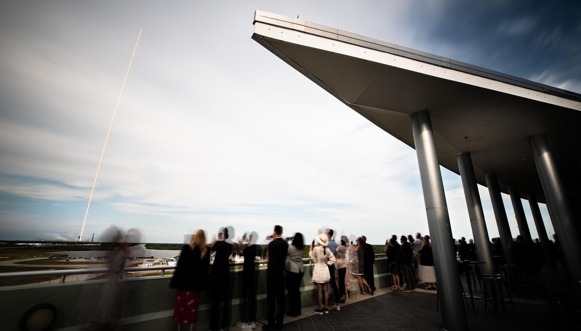 In this long exposure shot, a SpaceX Falcon 9 rocket, carrying the company’s Dragon spacecraft, soars upward after lifting off from NASA Kennedy Space Center’s Launch Complex 39A in Florida on May 21, 2023, for the Axiom Mission 2 (Ax-2) to the International Space Station. Ax-2 is the second all private astronaut mission to the International Space Station, sending Commander Peggy Whitson, Pilot John Shoffner, and Mission Specialists Ali Alqarni and Rayyanah Barnawi to the orbiting laboratory, where they will spend about 10 days conducting scientific research, outreach, and commercial activities. Liftoff occurred at 5:37 p.m. EDT.