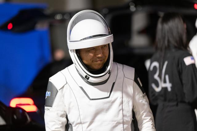 NASA’s SpaceX Crew-7 JAXA (Japan Aerospace Exploration Agency) astronaut Satoshi Furukawa smiles outside of the Neil Armstrong Operations and Checkout Building at NASA’s Kennedy Space Center in Florida on Saturday, Aug. 26, 2023. Furukawa and his crewmates are preparing to get into the customized Tesla Model X vehicles that will transport them to Kennedy’s Launch Complex 39A. SpaceX’s Dragon spacecraft, powered by the company’s Falcon 9 rocket, will carry the four-person crew – which includes NASA astronaut Jasmin Moghbeli, ESA (European Space Agency) astronaut Andreas Mogensen, and Roscosmos cosmonaut Konstantin Borisov – to the International Space Station as part of NASA’s Commercial Crew Program. Crew-7 is scheduled to launch at 3:27 a.m. EDT.