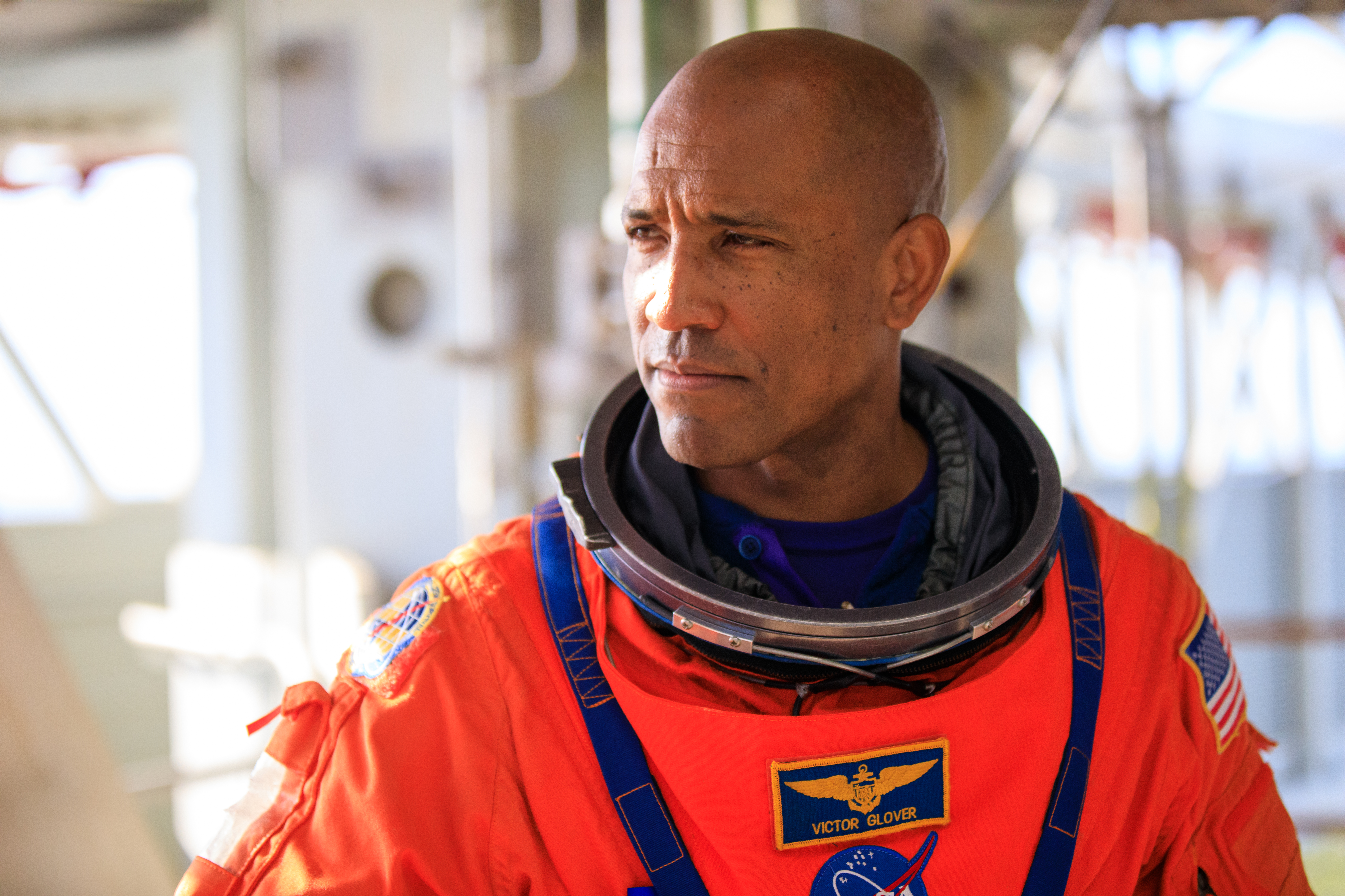 Artemis II NASA astronaut Victor Glover stands on the mobile launcher at Launch Pad 39B as part of an integrated ground systems test at Kennedy Space Center in Florida on Wednesday, Sept. 20, 2023. The test ensures the ground systems team is ready to support the crew timeline on launch day.