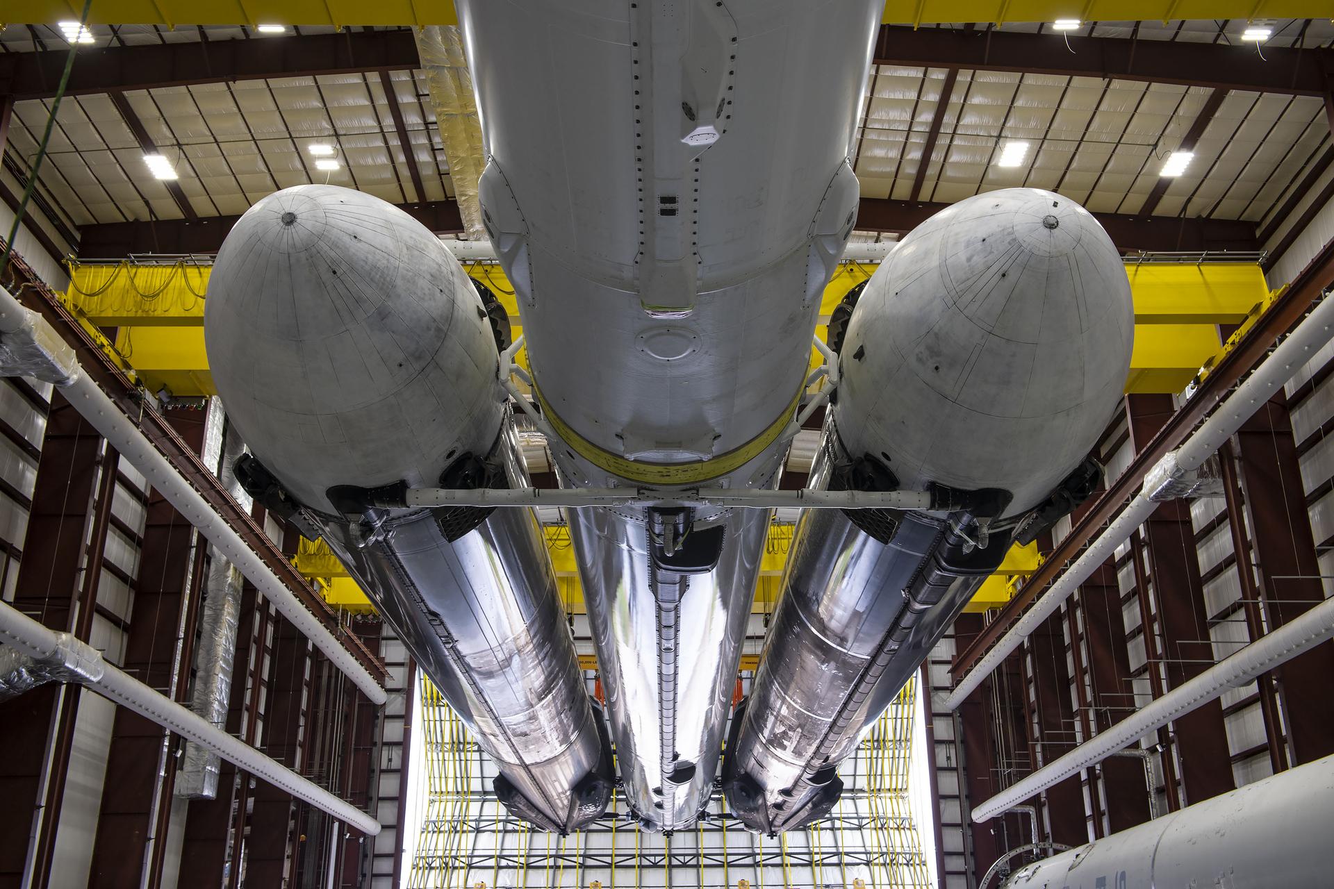 Photos of the Falcon Heavy rocket that will launch NASA's Psyche mission in the hangar at Launch Complex 39A at Kennedy Space Center in Florida before it rolled out to the pad for a static fire test as part of preparations for the journey to a metal-rich asteroid.