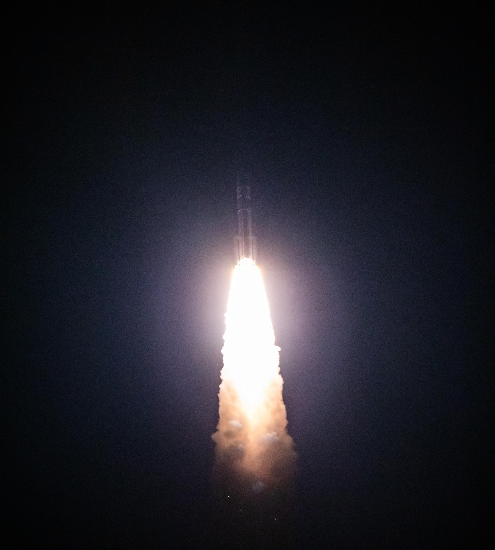 On the first flight of NASA’s CLPS (Commercial Lunar Payload Services) initiative and Artemis program, a United Launch Alliance Vulcan rocket carrying Astrobotic’s Peregrine lunar lander lifts off at 2:18 a.m. EST from Space Launch Complex 41 at Cape Canaveral Space Force Station in Florida on Monday, Jan. 8, 2024. Astrobotic’s Peregrine Mission One will carry NASA and commercial payloads to the Moon to study the lunar exosphere, thermal properties, and hydrogen abundance of the lunar regolith, magnetic fields, and the radiation environment of the lunar surface.