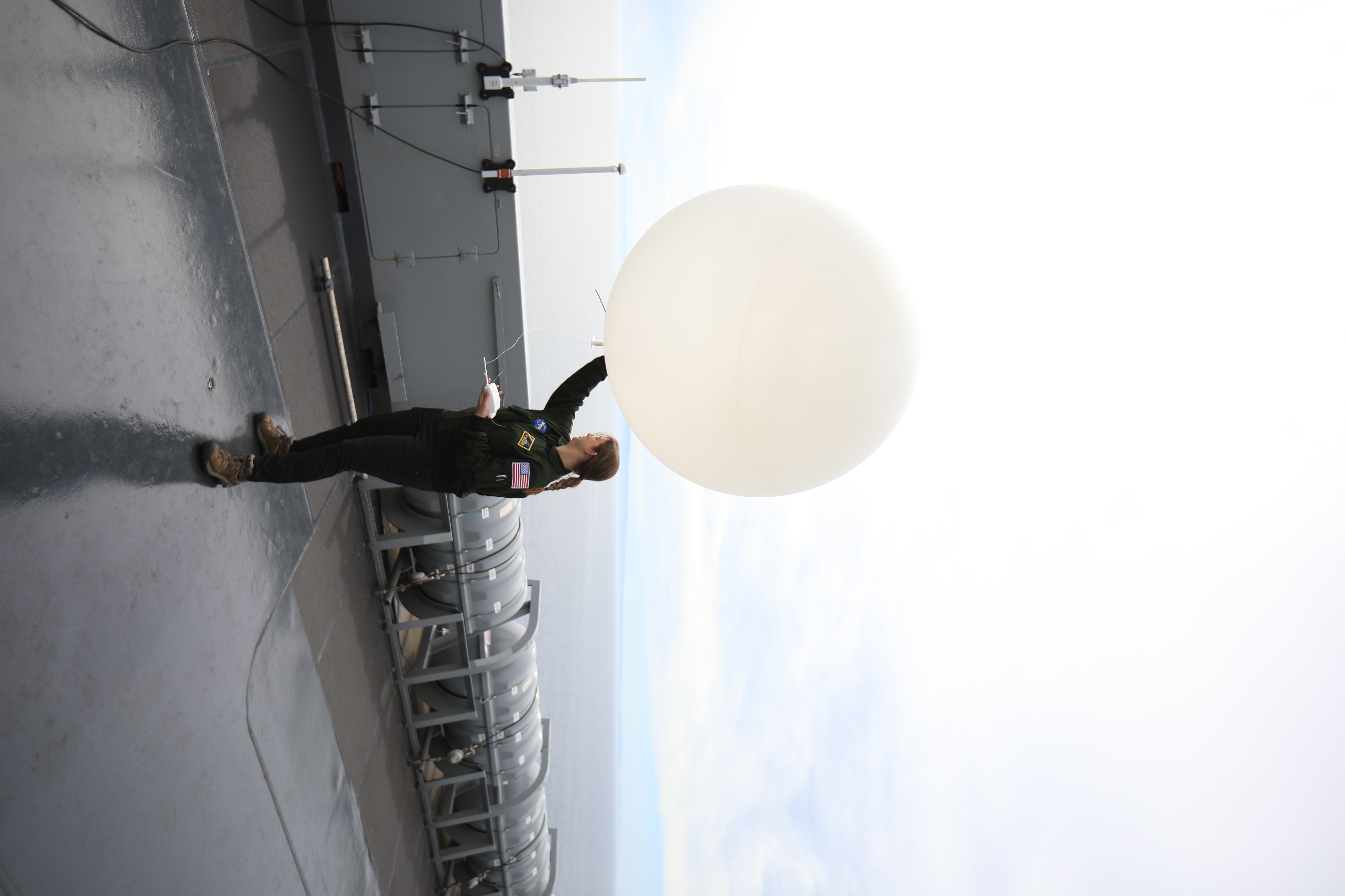 Members of NASA’s Exploration Ground System’s Landing and Recovery team and partners from the Department of Defense aboard the USS San Diego release a weather balloon while practicing recovery procedures using the Crew Module Test Article during Underway Recovery Test 11 (URT-11) off the coast of San Diego on Saturday, Feb. 24, 2024. URT-11 is the eleventh in a series of Artemis recovery tests, and the first time NASA and its partners put their Artemis II recovery procedures to the test with the astronauts.