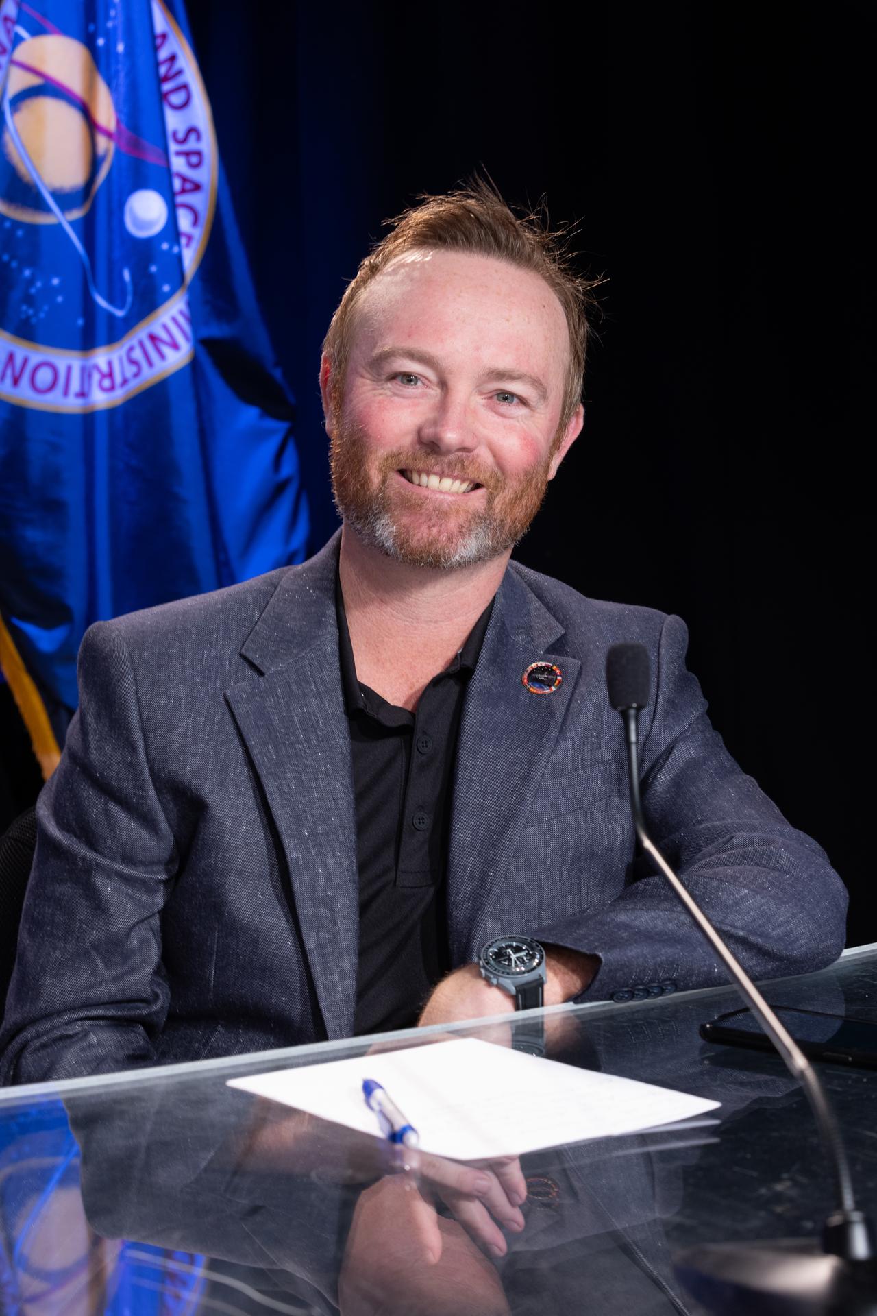 Public Affairs and Outreach Lead of the ISS National Laboratory Patrick O’Neill participates in a social media panel discussion inside the John Holliman Auditorium of the News Center at NASA’s Kennedy Space Center in Florida on Wednesday, Feb. 28, 2024, ahead of NASA’s SpaceX Crew-8 mission to the International Space Station. Liftoff of the eighth crew rotation mission with SpaceX to the station and the ninth flight of Dragon with people as part of the agency’s Commercial Crew Program from Kennedy’s Launch Complex 39A is targeted for 12:04 a.m. on Friday, March 1.