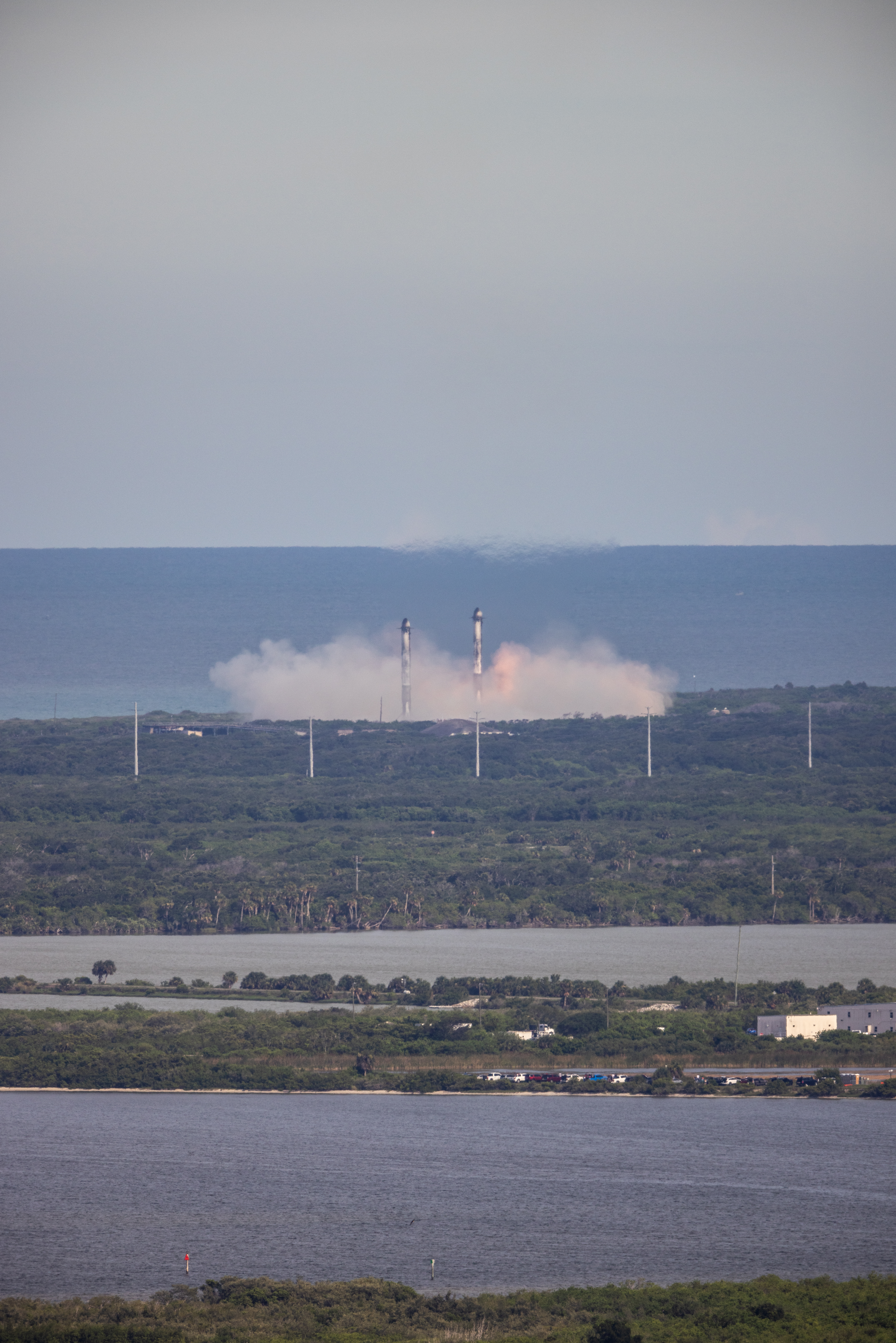 The SpaceX Falcon Heavy dual side boosters land on SpaceX Landing Zones 1 and 2 at Cape Canaveral Space Force Station in Florida. The rocket carrying NOAA’s (National Oceanic and Atmospheric Administration) Geostationary Operational Environmental Satellite (GOES-U) launched from NASA’s Kennedy Space Center in Florida on Tuesday, June 25, 2024.