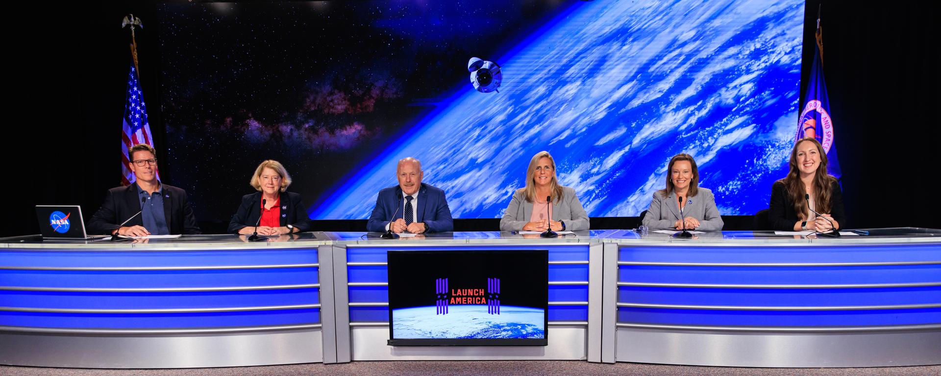 A postlaunch news conference is hosted at the agency’s Kennedy Space Center in Florida on Saturday, Sept. 28, 2024, following the launch of NASA’s SpaceX Crew-9 mission. Participants include Derrol Nail, NASA Communications; NASA Deputy Administrator Pam Melroy; Ken Bowersox, associate administrator, NASA’s Space Operations Mission Directorate; Dana Hutcherson, deputy manager, NASA’s Commercial Crew Program; Dina Contella, deputy manager, NASA’s International Space Station Program; Sarah Walker, director, Dragon Mission Management, SpaceX. NASA astronaut Nick Hague and Roscosmos cosmonaut Aleksandr Gorbunov launched to the International Space Station aboard SpaceX’s Dragon spacecraft and Falcon 9 rocket from nearby Space Launch Complex-40 at Cape Canaveral Space Force Station at 1:17 p.m. EDT on the ninth crew rotation mission with SpaceX to the space station as part of the agency’s Commercial Crew Program.