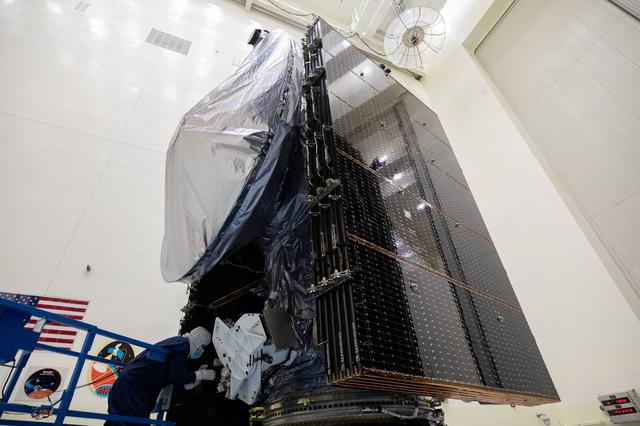 Technicians encapsulated NASA’s Europa Clipper spacecraft inside payload fairings on Wednesday, Oct. 2, 2024, in the Payload Hazardous Servicing Facility at NASA’s Kennedy Space Center in Florida. The fairings will protect the spacecraft during launch as it begins its journey to explore Jupiter’s icy moon, Europa. The mission will help scientists determine if the moon could support life. NASA and SpaceX are targeting launch at 12:31 p.m. EDT on Thursday, Oct. 10, 2024, from Launch Complex 39A at Kennedy Space Center in Florida.