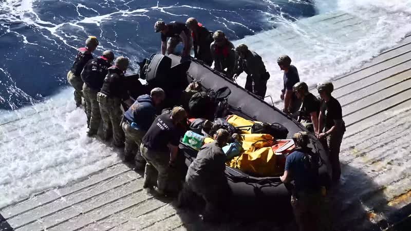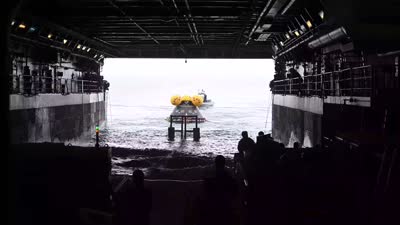 Sailors assigned to amphibious transport dock USS Somerset (LPD 25), Explosive Ordnance Disposal Group 1, and Helicopter Sea Combat Squadron 23 “Wildcards” participate alongside NASA and European Space Agency Astronauts during NASA Underway Recovery Test 12 in the Pacific Ocean, March 30, 2025. In preparation for NASA's Artemis II crewed mission, which will send four astronauts around the Moon and beyond in the Orion spacecraft, NASA and the Department of Defense will conduct a series of tests to demonstrate and evaluate the processes, procedures, and hardware used in recovery operations for crewed lunar missions. The Department of Defense has many unique capabilities that make it an ideal partner to support NASA, including its amphibious ships with the ability to embark helicopters, launch and recover small boats and provide medical care at advanced onboard facilities.