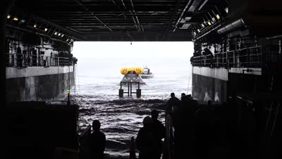 NASA and the Department of Defense completed Underway Recovery Test 12 aboard the amphibious transport dock USS Somerset (LPD 25) off the coast of San Diego, March 25-31, 2025. In preparation for NASA's Artemis II crewed mission, which will send four astronauts around the Moon and beyond in the Orion spacecraft, NASA and the Department of Defense will conduct a series of tests to demonstrate and evaluate the processes, procedures, and hardware used in recovery operations for crewed lunar missions. The Department of Defense has many unique capabilities that make it an ideal partner to support NASA, including its amphibious ships with the ability to embark helicopters, launch and recover small boats and provide medical care at advanced onboard facilities.