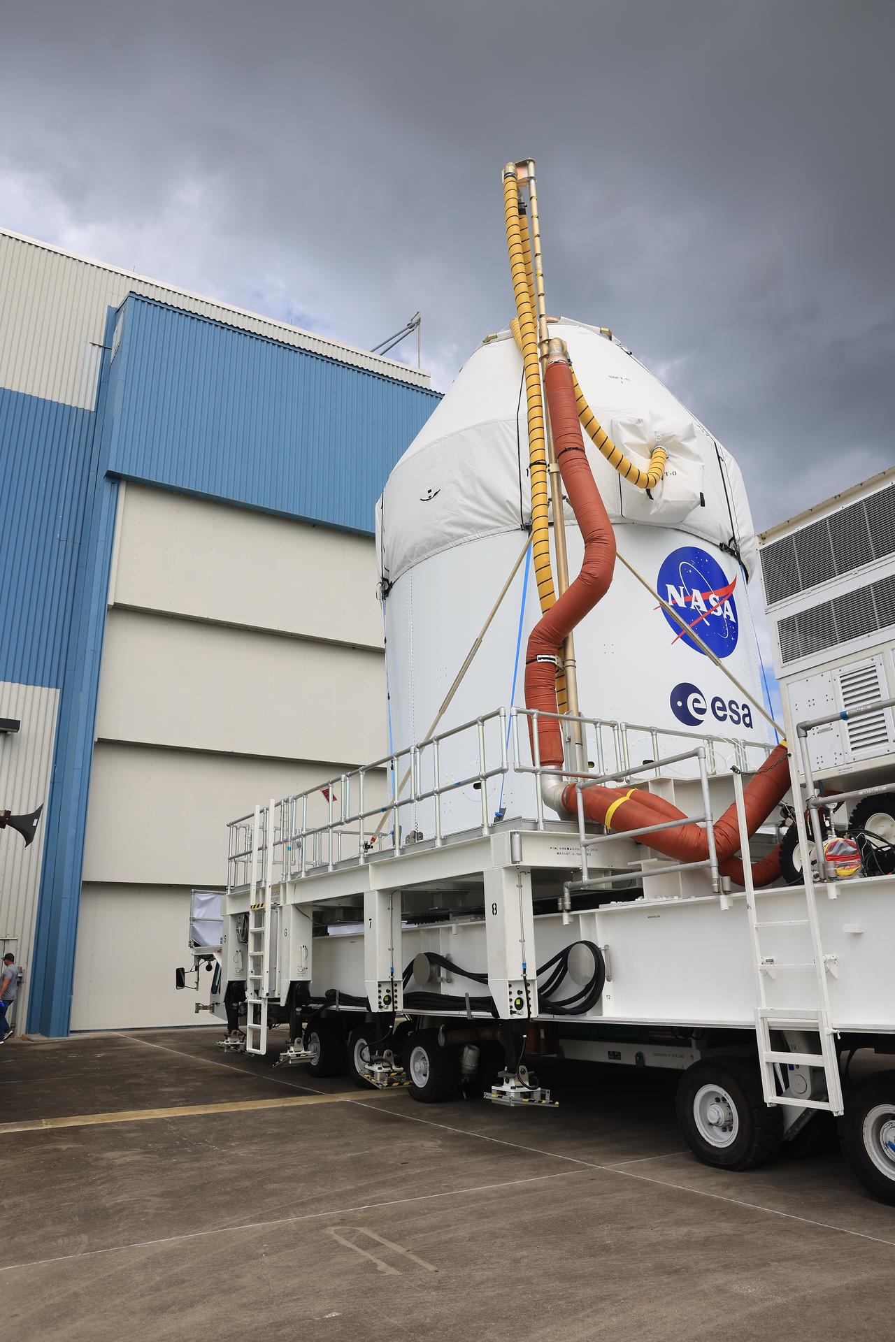 NASA’s Artemis II Orion spacecraft arrives at the Multi-Payload Processing Facility at Kennedy Space Center in Florida on Saturday, May 3, 2025, to undergo fueling and processing operations for prelaunch operations. The Artemis II test flight is the first crewed flight under NASA’s Artemis campaign and is another step toward missions on the lunar surface and helping the agency prepare for future human missions to Mars.