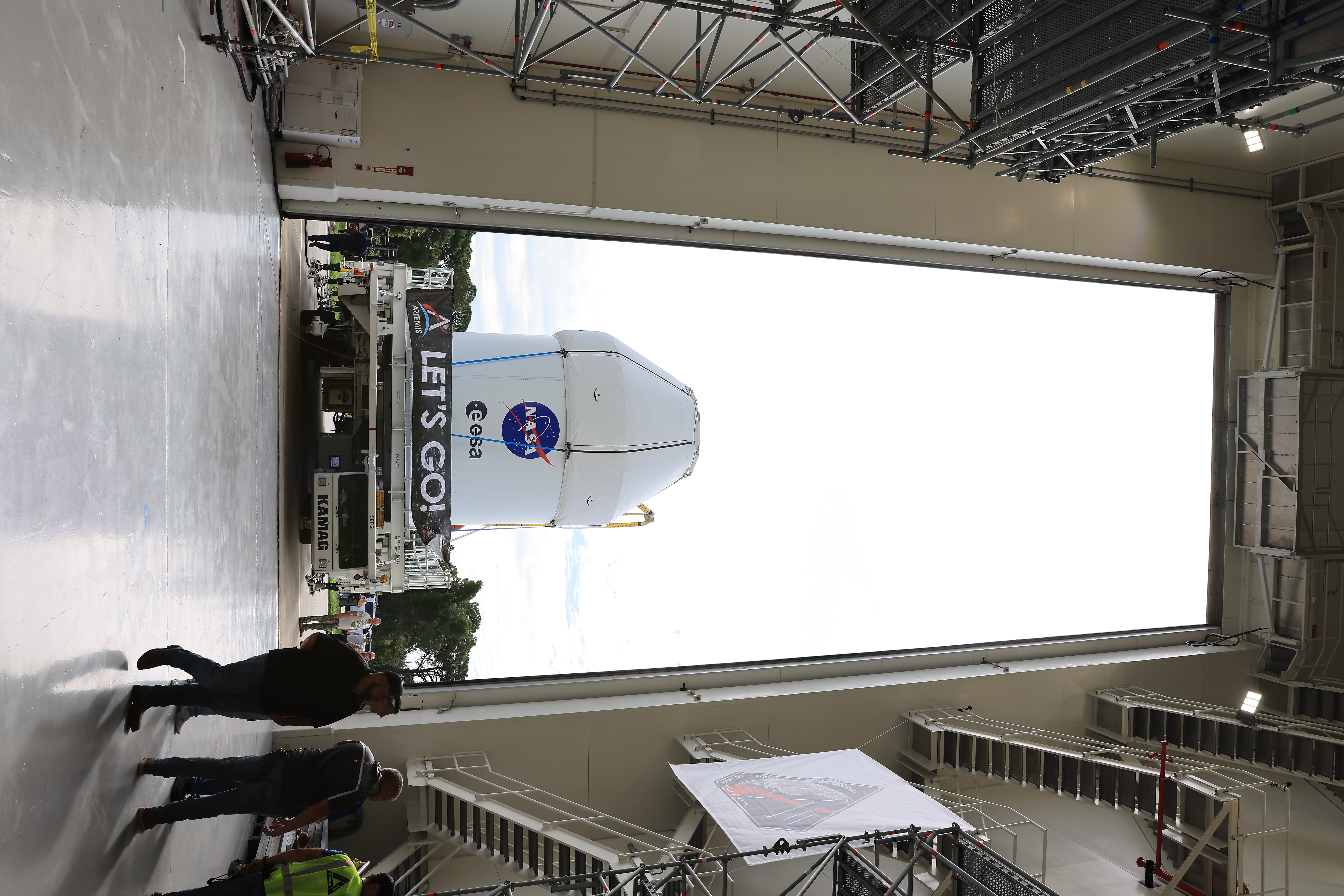 NASA’s Artemis II Orion spacecraft arrives at the Launch Abort System Facility at the agency’s Kennedy Space Center in Florida on Sunday, Aug. 10, 2025, to prepare for integration with its 44-foot-tall launch abort system. Once integration is complete, the stack will be transported to High Bay 3 inside NASA Kennedy’s Vehicle Assembly Building and integrated with the SLS (Space Launch System) rocket that will launch NASA’s Artemis II astronauts Reid Wiseman, Victor Glover, and Christina Koch, and CSA (Canadian Space Agency) astronaut Jeremy Hansen around the Moon and back.