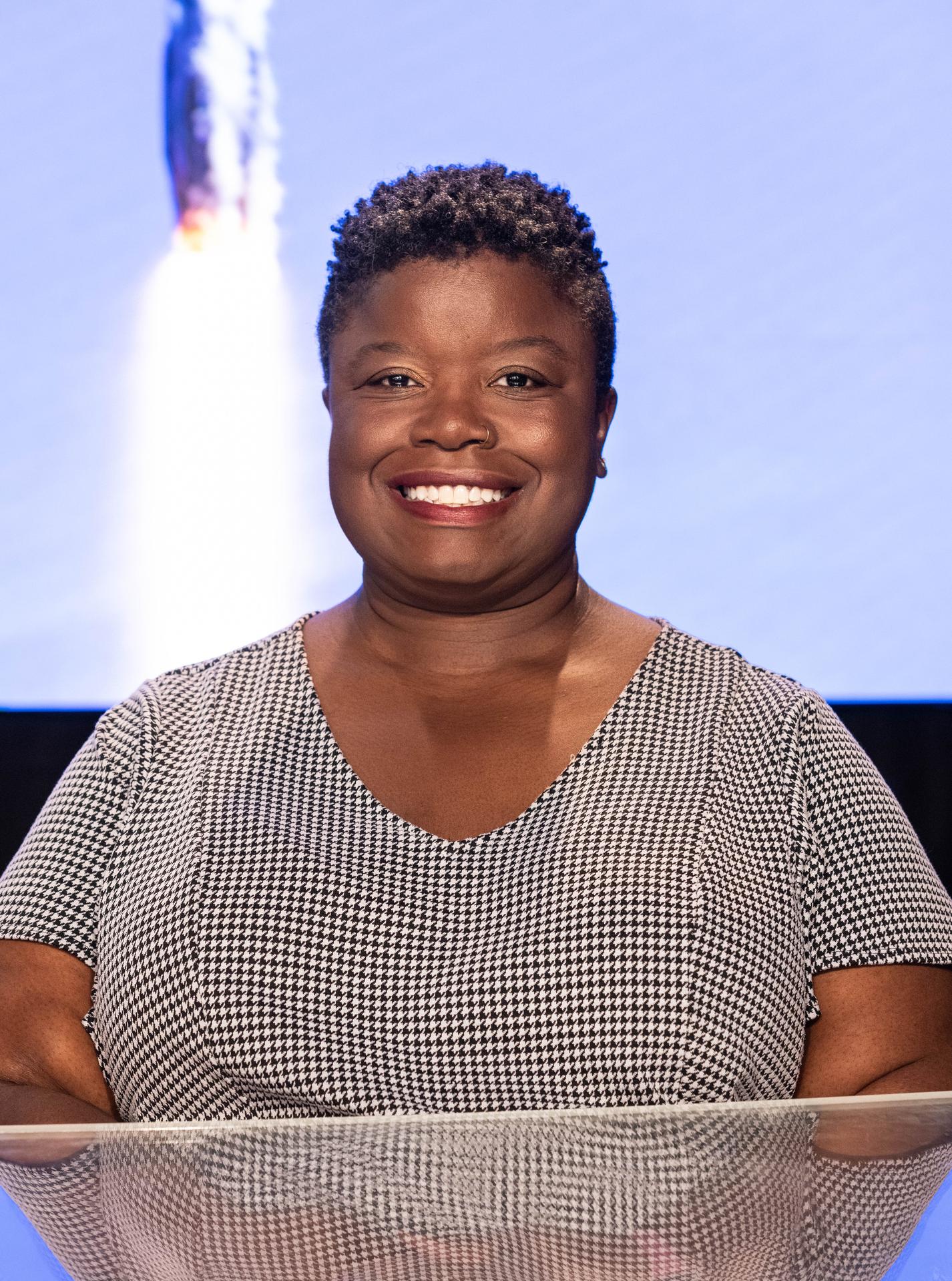 Arlena Moses, launch weather officer, 45th Weather Squadron, U.S. Space Force, participates in a prelaunch news conference on Sunday, Sept. 21, 2025, at the agency’s Kennedy Space Center in Florida for NASA's IMAP (Interstellar Mapping and Acceleration Probe) mission. NASA’s IMAP will use 10 science instruments to study and map the heliosphere, a vast magnetic bubble surrounding the Sun protecting our solar system from radiation incoming from interstellar space. This mission and its two rideshares – NASA’s exosphere-studying Carruthers Geocorona Observatory and National Oceanic and Atmospheric Administration’s (NOAA) Space Weather Follow On–Lagrange 1 (SWFO-L1) observatory – will orbit the Sun near Lagrange point 1, about one million miles from Earth. Launch is targeting 7:32 a.m. EDT, Tuesday, Sept. 23, from Launch Complex 39A at NASA Kennedy.