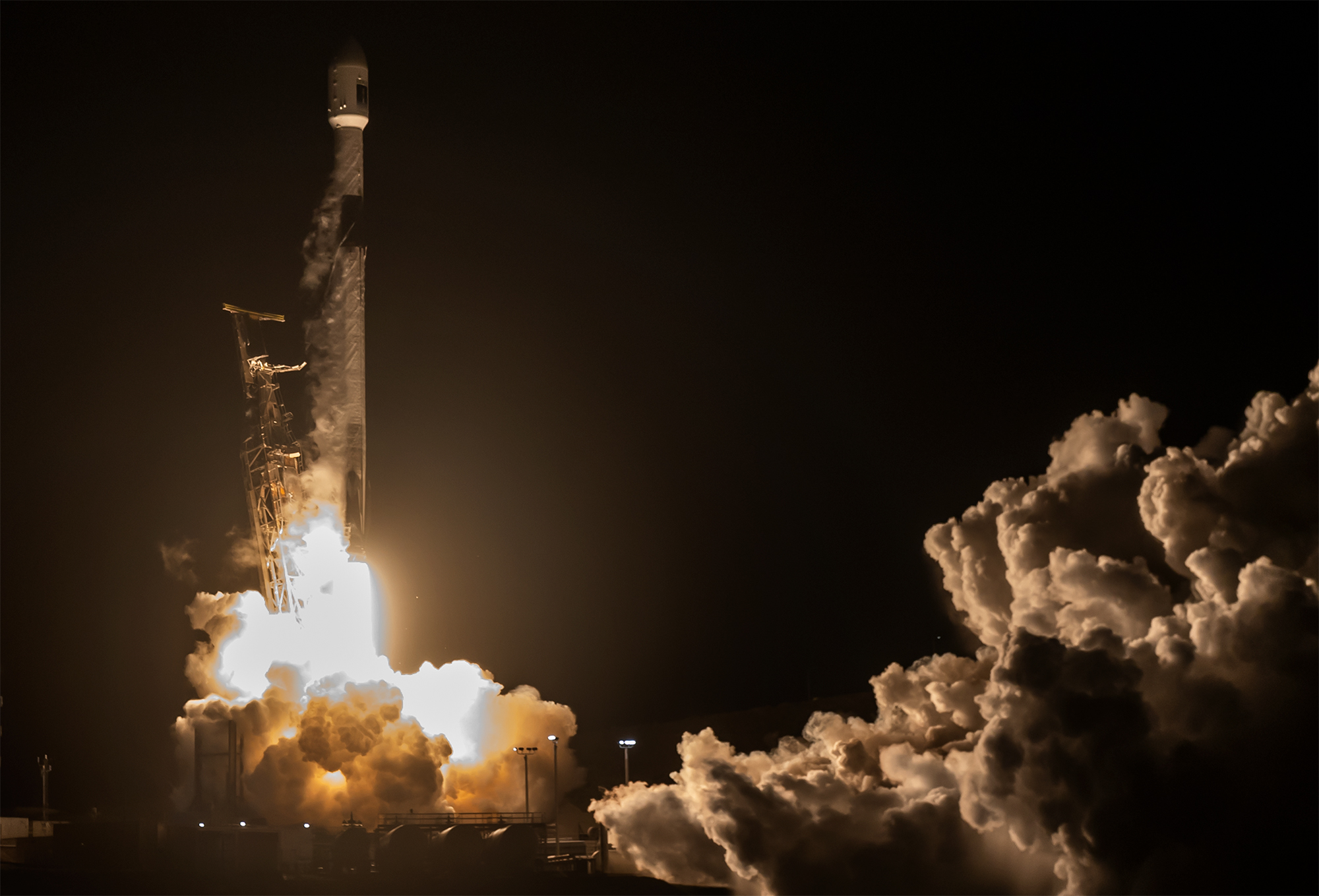 A SpaceX Falcon 9 rocket carrying the international Sentinel-6B spacecraft lifts off from Space Launch Complex 4 East at Vandenberg Space Force Base in California at 9:21 p.m. PST Sunday, Nov. 16, 2025. A collaboration between NASA, ESA (European Space Agency), EUMETSAT (European Organisation for the Exploitation of Meteorological Satellites), and the National Oceanic and Atmospheric Administration (NOAA), Sentinel-6B is designed to measure sea levels down to roughly an inch for about 90% of the world’s oceans.