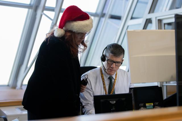 Charlie Blackwell-Thompson, Artemis launch director, and Jeremy Graeber, assistant launch director, monitor the progress of a countdown demonstration test with Artemis II crewmembers NASA astronauts Reid Wiseman, commander; Victor Glover, pilot; Christina Koch, mission specialist; and CSA (Canadian Space Agency) astronaut Jeremy Hansen, mission specialist onboard their Orion spacecraft from Firing Room 1 of the Rocco A. Petrone Launch Control Center, Saturday, Dec. 20, 2025, at NASA’s Kennedy Space Center in Florida. For this operation, the Artemis II crew and launch teams are simulating the launch day timeline including suit-up, walkout, and spacecraft ingress and egress. Through the Artemis campaign, NASA will send astronauts to explore the Moon for scientific discovery, economic benefits, and to build the foundation for the first crewed missions to Mars, for the benefit of all.