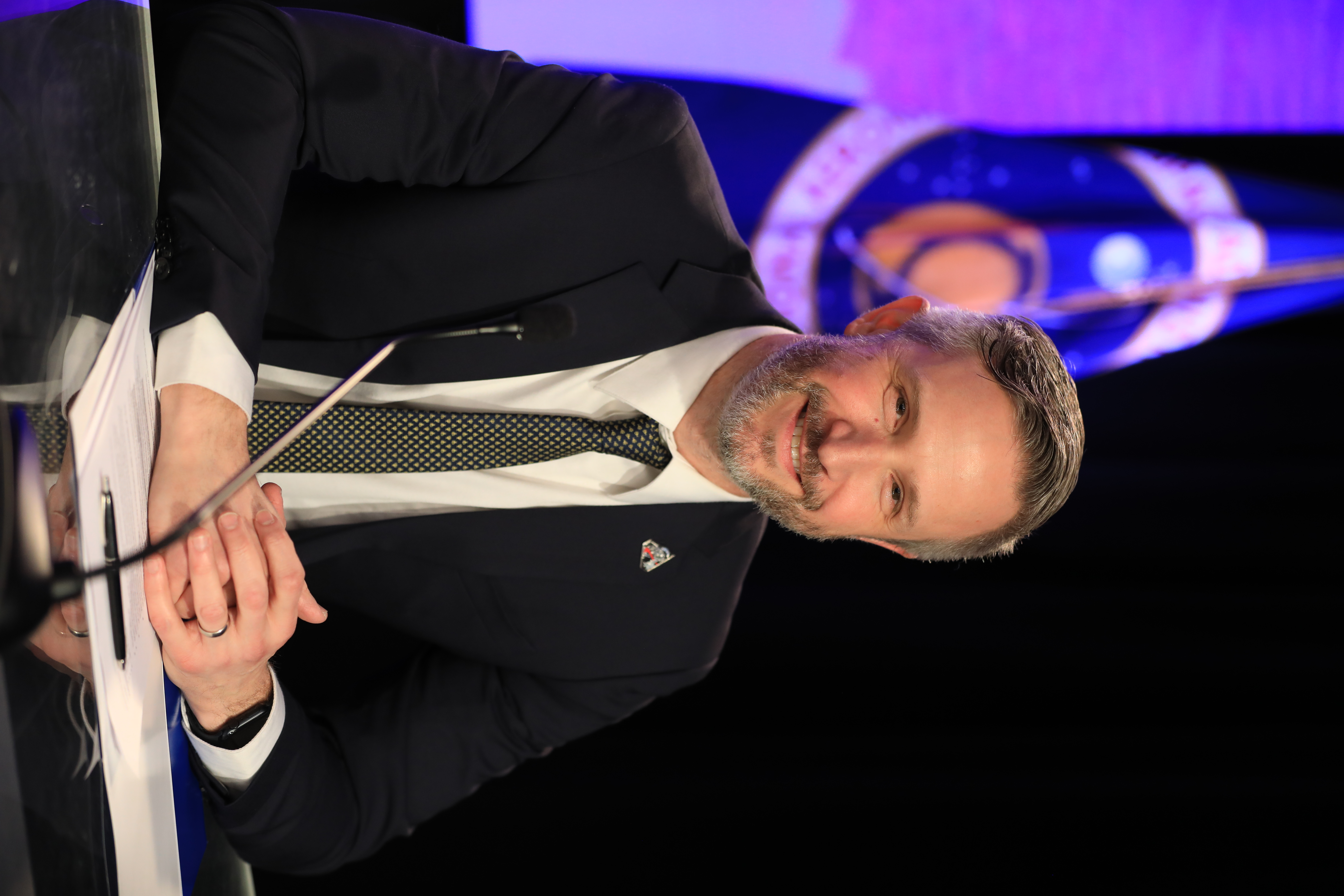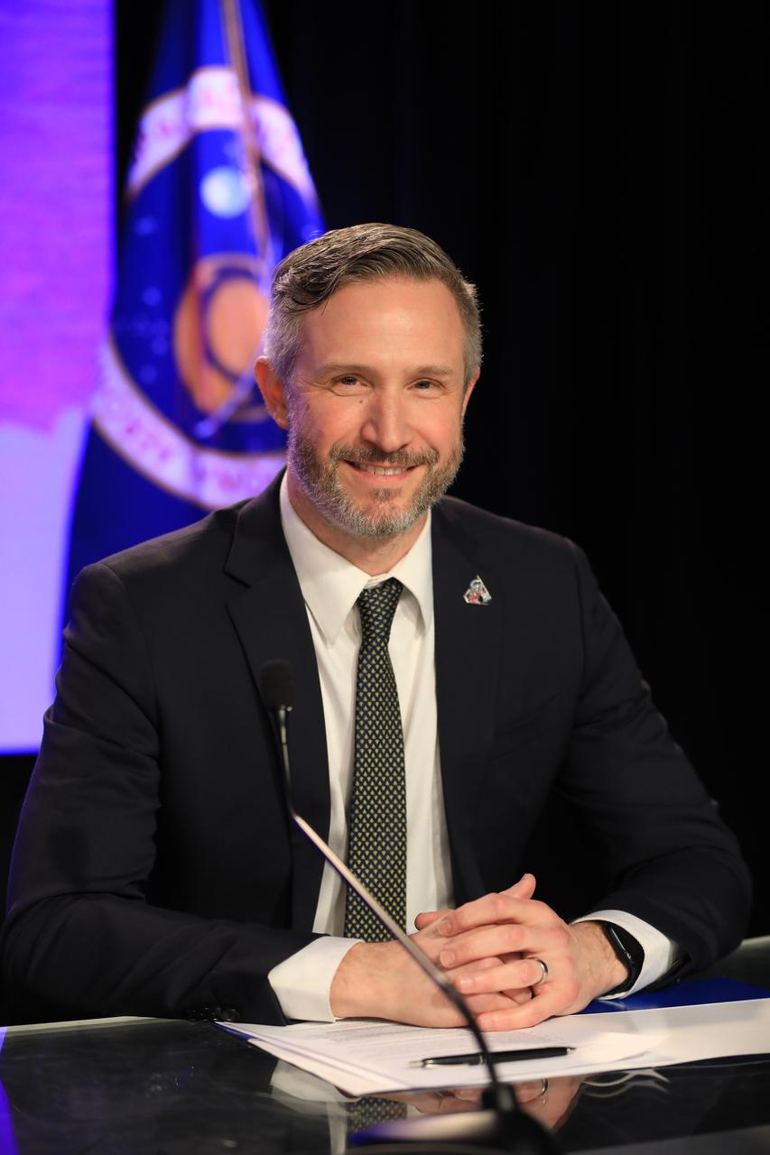 Jacob Bleacher, chief exploration scientist in the Exploration Systems Development Mission Directorate at NASA Headquarters in Washington, participates in an Artemis II mission overview news conference on Friday, Jan. 16, 2026, at NASA’s Kennedy Space Center in Florida ahead of rollout of the SLS (Space Launch System) rocket and Orion spacecraft from the Vehicle Assembly Building to Launch Complex 39B at NASA Kennedy. The Artemis II test flight will take Commander Reid Wiseman, Pilot Victor Glover, and Mission Specialist Christina Koch from NASA, and Mission Specialist Jeremy Hansen from the CSA (Canadian Space Agency), around the Moon and back to Earth no later than April 2026.