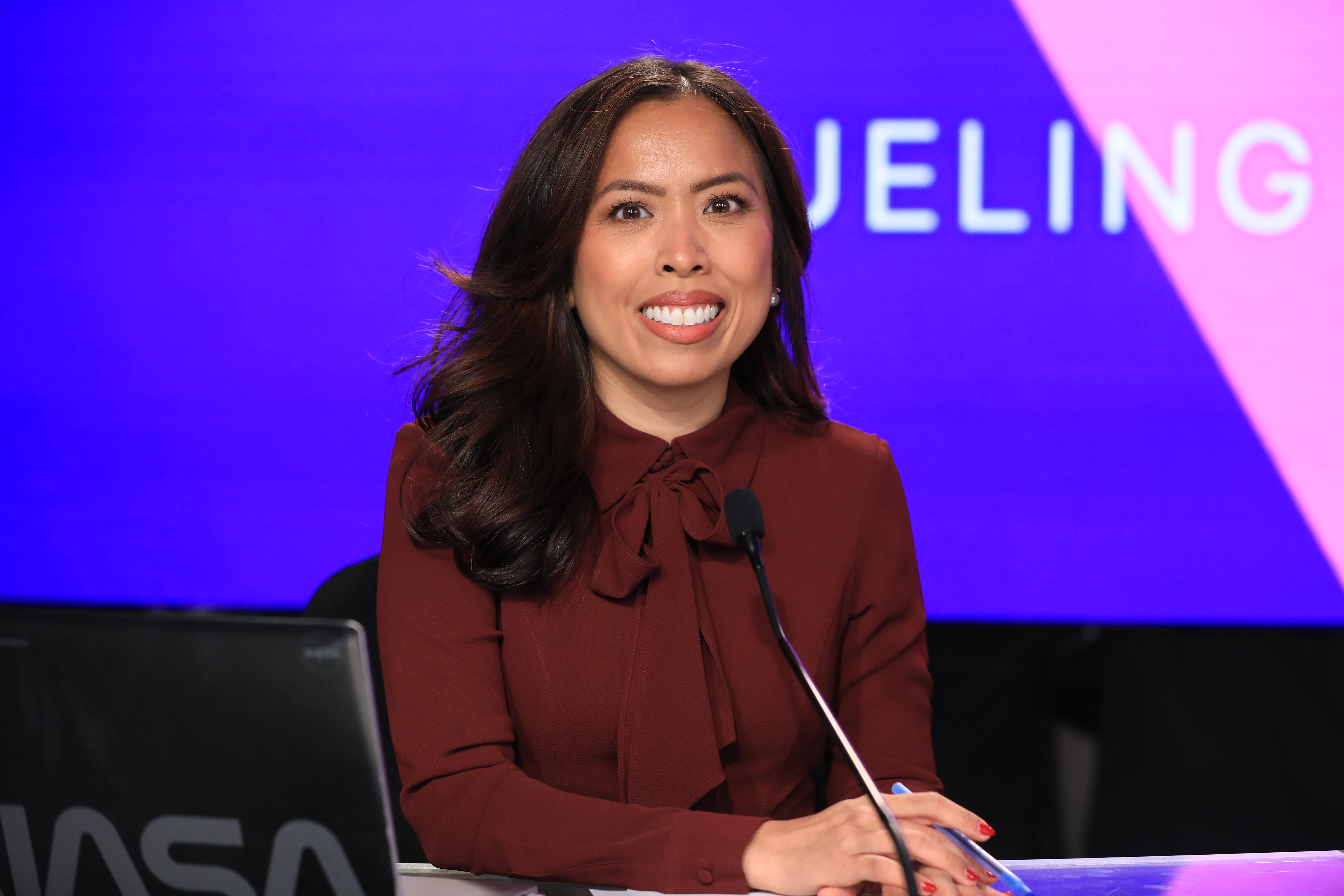 Megan Cruz, NASA Communications, participates in a news conference on Friday, Feb. 20, 2026, to discuss the completion of Artemis II second wet dress rehearsal at NASA’s Kennedy Space Center in Florida. The wet dress rehearsal allows the Artemis II launch team to run through operations to load propellant, conduct a full launch countdown, demonstrate the ability to recycle the countdown clock, and drain the tanks to practice timelines and procedures for launch. The Artemis II test flight will take Commander Reid Wiseman, Pilot Victor Glover, and Mission Specialist Christina Koch, from NASA and Mission Specialist Jeremy Hansen from the CSA (Canadian Space Agency), around the Moon and back to Earth from Launch Complex 39B at NASA Kennedy.