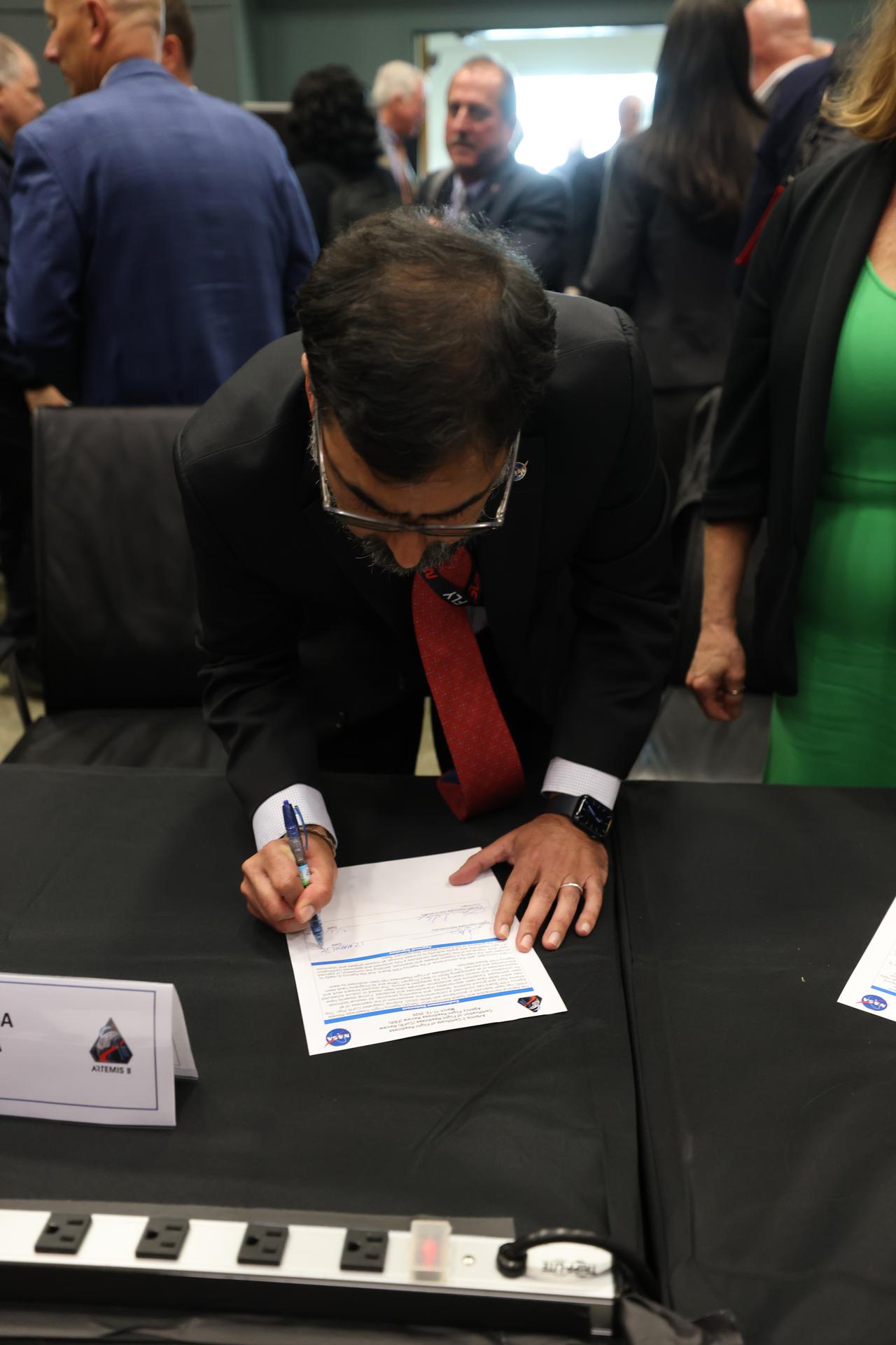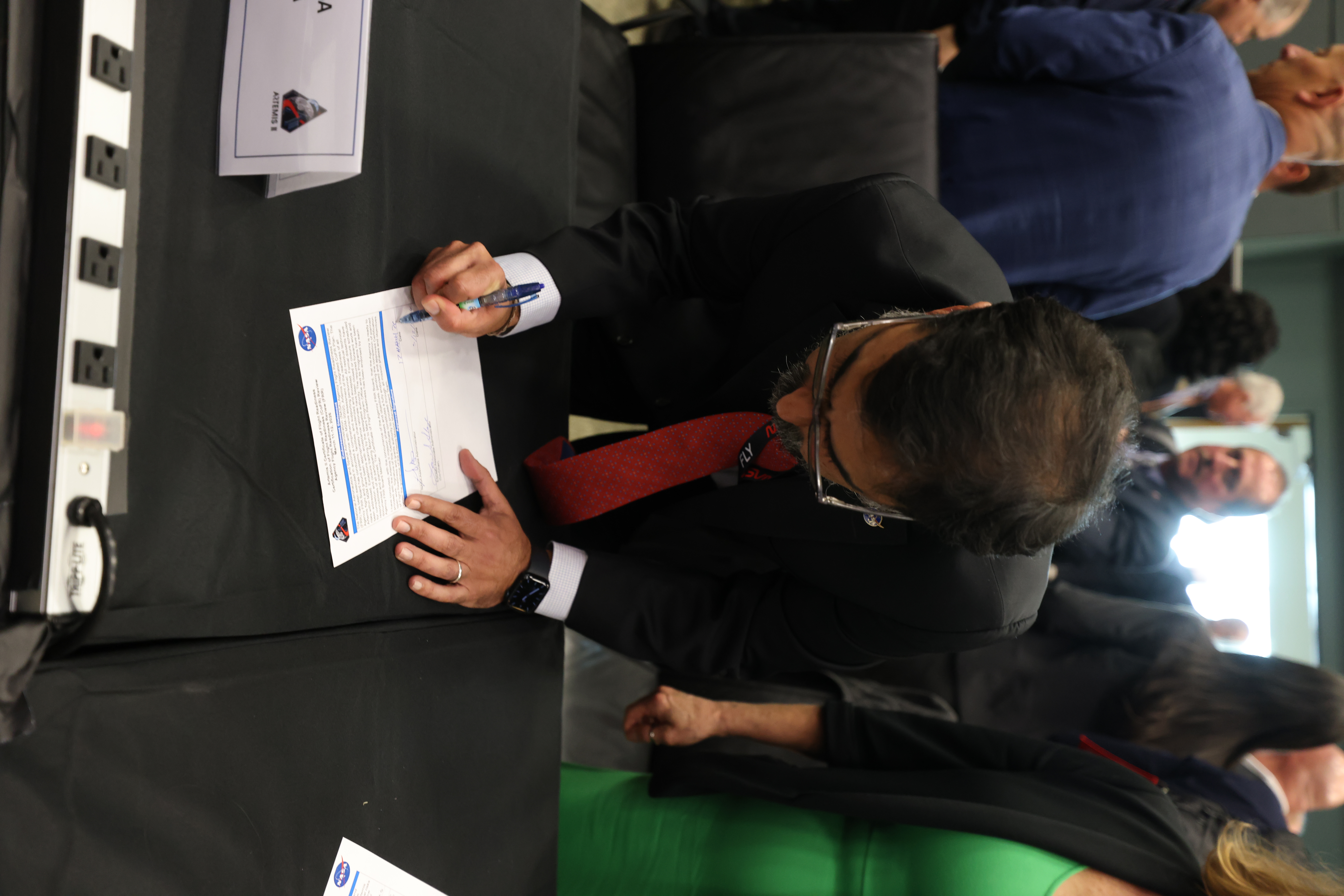 NASA Associate Administrator Amit Kshatriya signs the certification for flight readiness following the completion of the Flight Readiness Review for the Artemis II test flight on Thursday, March 12, 2026, at NASA’s Kennedy Space Center in Florida. The review is an assessment of the readiness of NASA’s SLS (Space Launch System) rocket and Orion spacecraft to support the Artemis II test flight as four astronauts journey around the Moon and return to Earth.