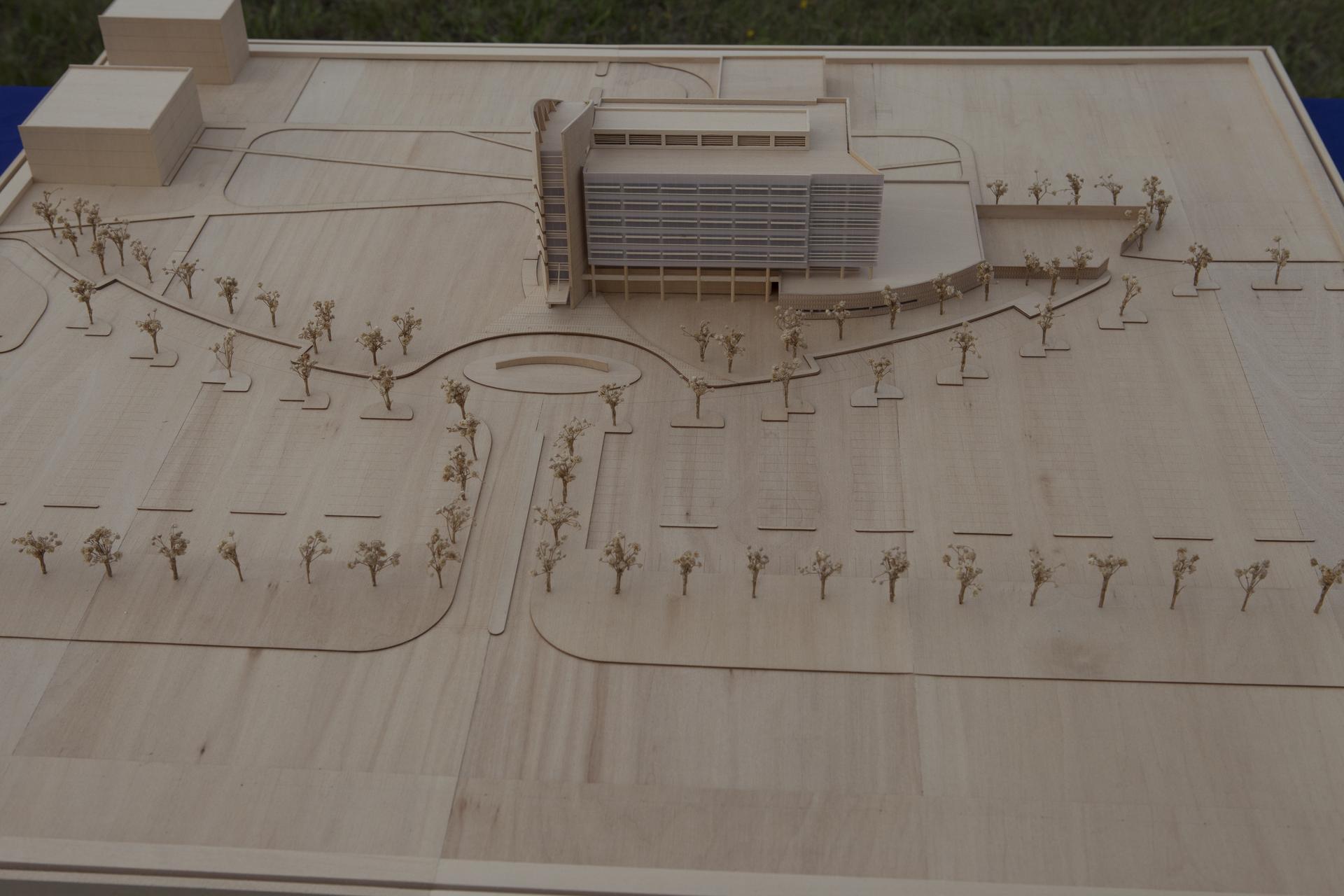 Groundbreaking for the new Central Campus will take place in the Industrial Area at NASA's Kennedy Space Center in Florida. A scale model of the new facility and landscaping is on display for the ceremony. Kennedy is transforming into a multi-user, 21st century spaceport supporting both commercial and government users and operations. Central Campus Phase I includes construction of a new Headquarters Building as one of the major components of the strategy. The new Headquarters Building will be a seven-story, 200,000-square-foot facility that will house about 500 NASA civil service and contractor employees.