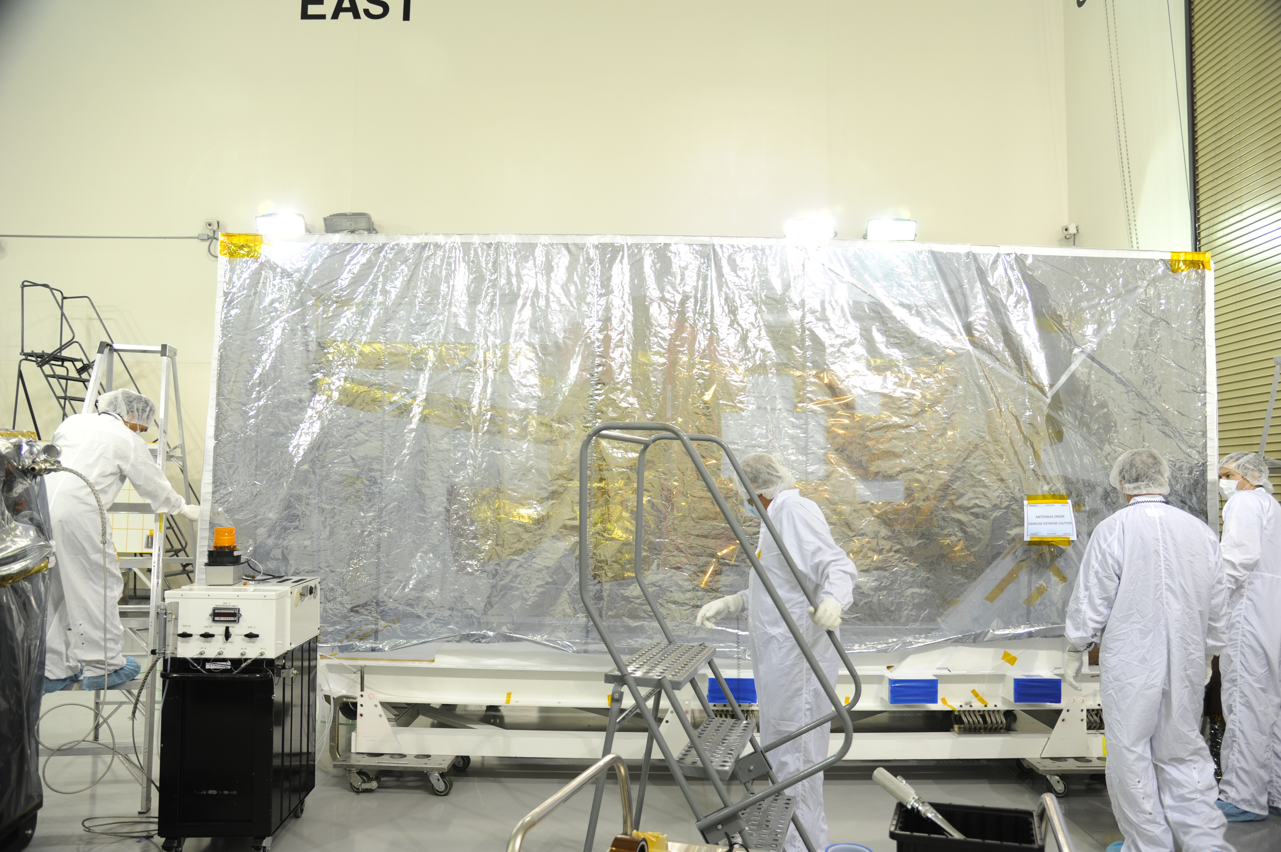 The protective covering has been replaced around NASA's Soil Moisture Active Passive, or SMAP, spacecraft following the spacecraft's post-shipment inspection in the Astrotech payload processing facility on Vandenberg Air Force Base in California. The covering will protect the spacecraft from static-charge buildup and contamination while it awaits further processing. SMAP will launch on a Delta II 7320 configuration vehicle featuring a United Launch Alliance first stage booster powered by an Aerojet Rocketdyne RS-27A main engine and three Alliant Techsystems, or ATK, strap-on solid rocket motors. Once on station in Earth orbit, SMAP will provide global measurements of soil moisture and its freeze/thaw state. These measurements will be used to enhance understanding of processes that link the water, energy and carbon cycles, and to extend the capabilities of weather and climate prediction models. SMAP data also will be used to quantify net carbon flux in boreal landscapes and to develop improved flood prediction and drought monitoring capabilities. Launch from Space Launch Complex 2 is targeted for Jan. 29, 2015.