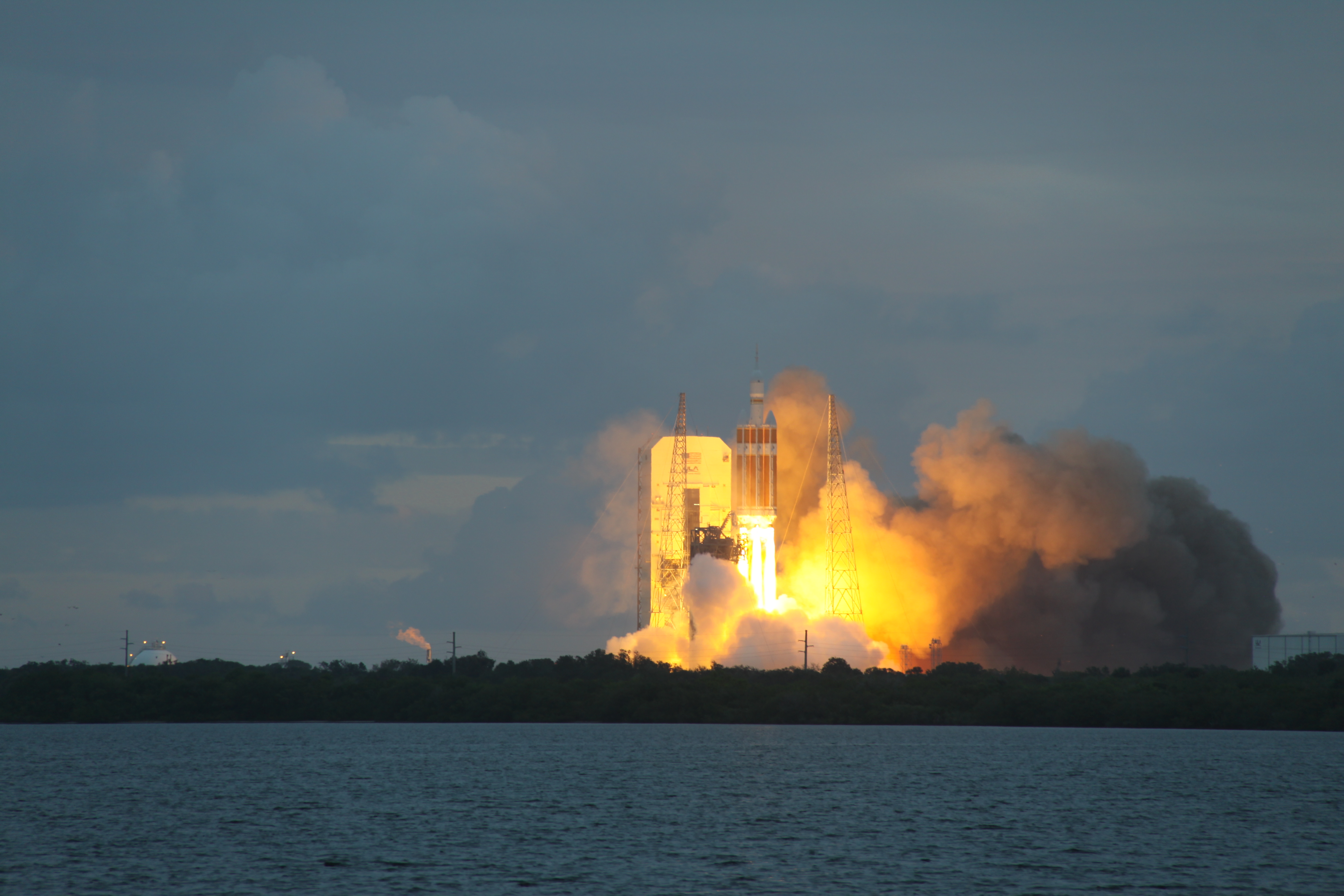 A Delta IV Heavy rocket lifts off from Space Launch Complex 37 at Cape Canaveral Air Force Station in Florida carrying NASA's Orion spacecraft on an unpiloted flight test to Earth orbit. Liftoff was at 7:05 a.m. EST. During the two-orbit, four-and-a-half hour mission, engineers will evaluate the systems critical to crew safety, the launch abort system, the heat shield and the parachute system.