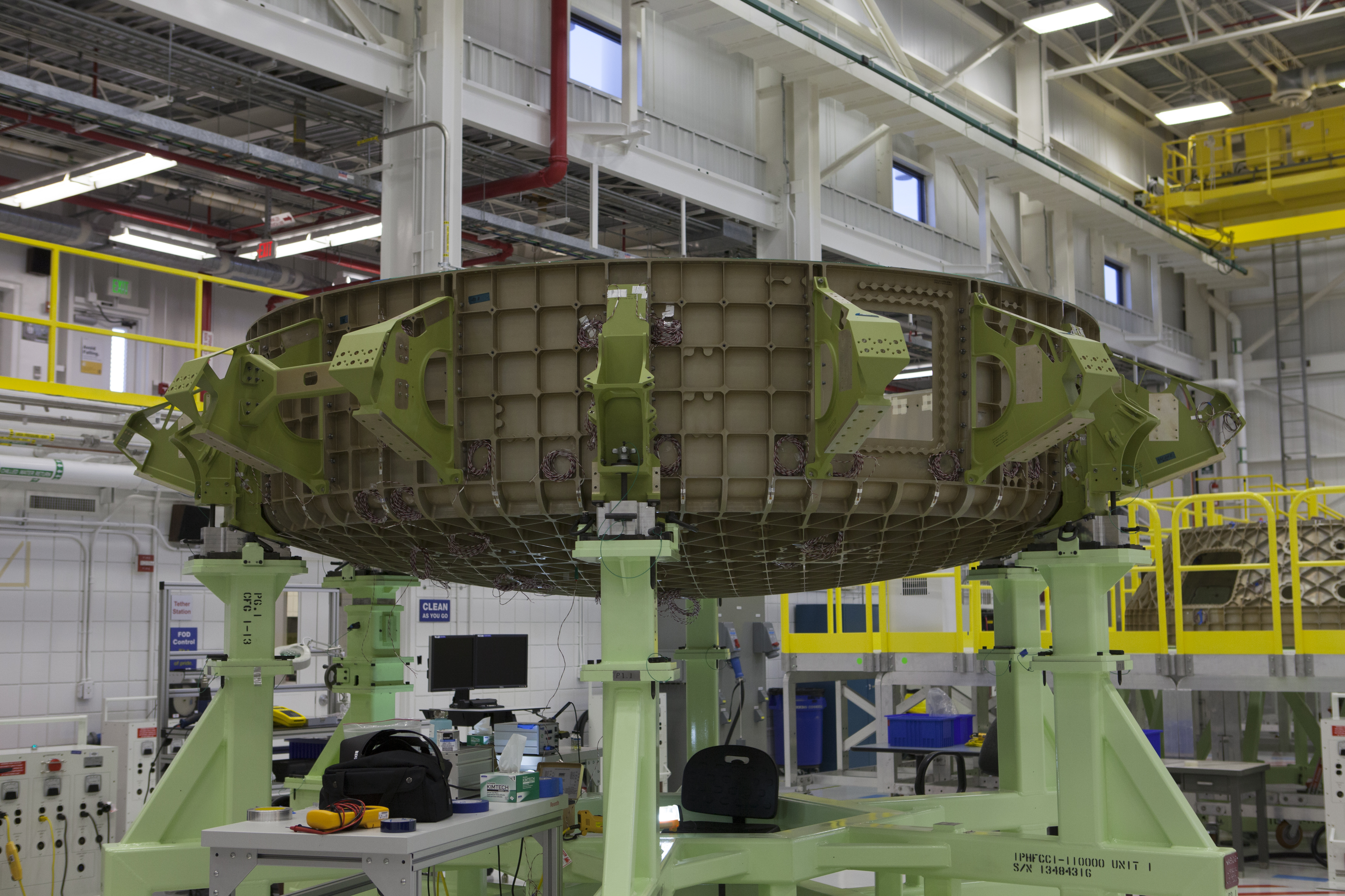 The lower dome of the Boeing CST-100 Structural Test Article awaits testing inside the Commercial Crew and Cargo Processing Facility, or C3PF, at NASA’s Kennedy Space Center in Florida. The test article will serve as a pathfinder for assembling and processing operational CST-100 spacecraft inside the revitalized facility, which for 20 years served as a shuttle processing hangar.