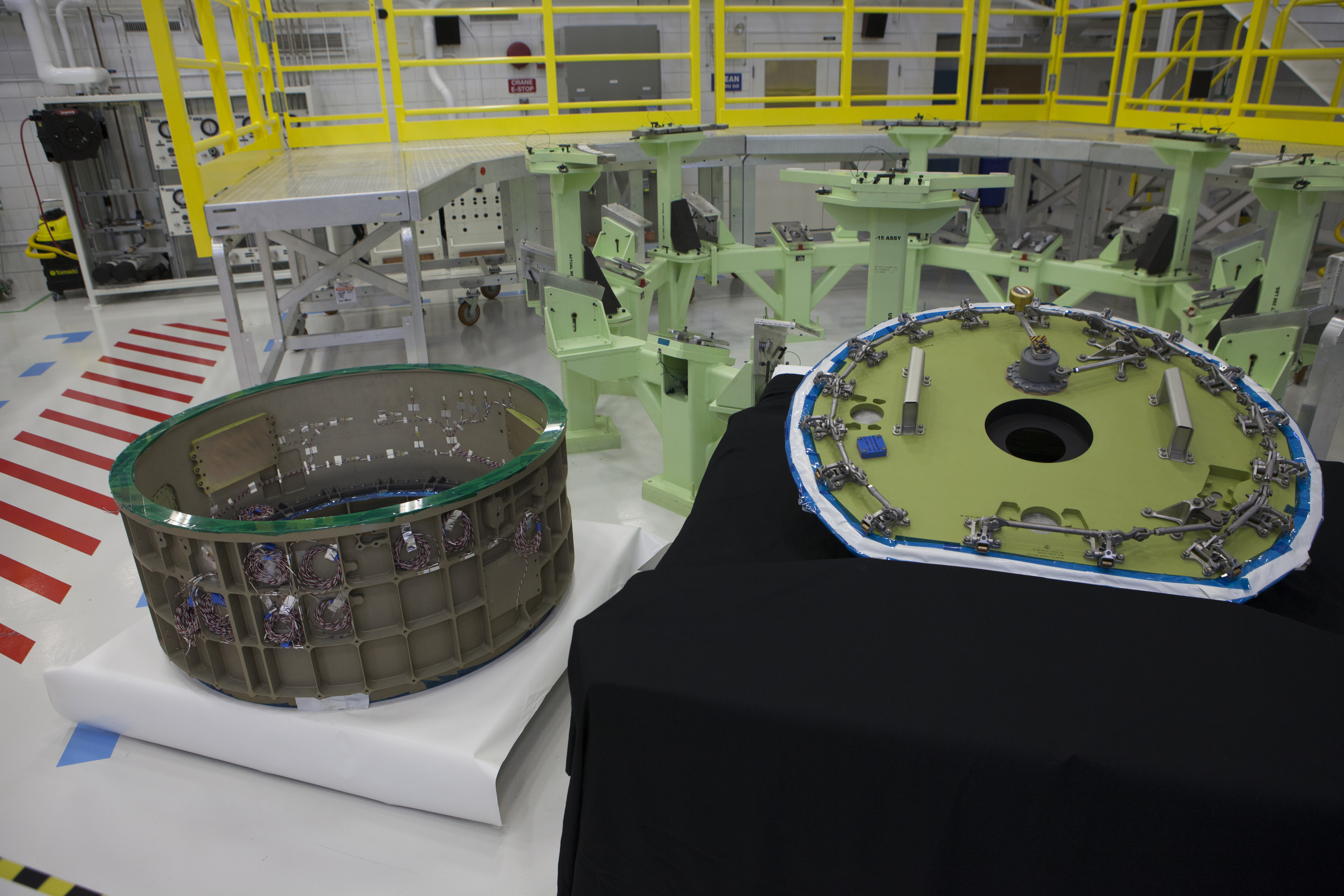 Parts of the Boeing CST-100 Structural Test Article await testing inside the Commercial Crew and Cargo Processing Facility, or C3PF, at NASA’s Kennedy Space Center in Florida. The test article will serve as a pathfinder for assembling and processing operational CST-100 spacecraft inside the revitalized facility, which for 20 years served as a shuttle processing hangar.