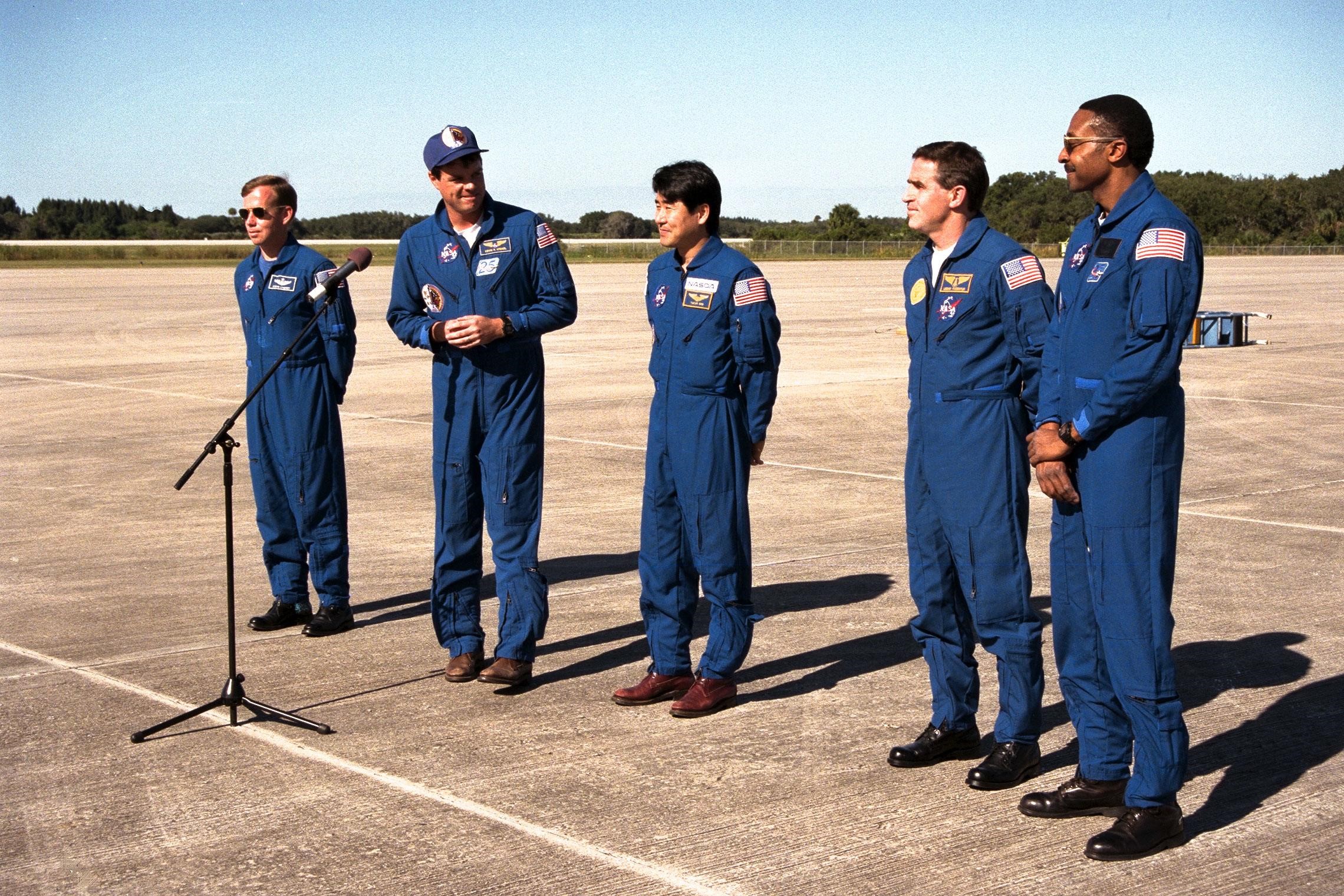 In preparation for Space Shuttle Mission STS-87, the crew arrives at the Kennedy Space Center Shuttle Landing Facility to participate in the Terminal Countdown Demonstration Test (TCDT) for their mission. The TCDT is a dress rehearsal for launch. STS-87 will be the fourth flight of the United States Microgravity Payload and the Spartan-201 deployable satellite. Launch is targeted for Nov. 19