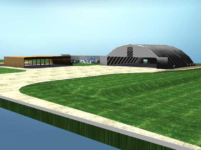 An artist's rendering shows the $8-million Reusable Launch Vehicle (RLV) Support Complex planned for the Shuttle Landing Facility (SLF) at Kennedy Space Center. The ground breaking took place today. To be located at the tow-way adjacent to the SLF, the complex will include a multi-purpose RLV hangar and adjacent facilities for related ground support equipment and administrative/technical support. It will be available to accommodate the Space Shuttle, the X-34 RLV technology demonstrator, the L-1011 carrier aircraft for Pegasus and X-34, and other RLV and X-vehicle programs. The complex is jointly funded by the Spaceport Florida Authority, NASA's Space Shuttle Program and KSC. The facility will be operational in early 2000