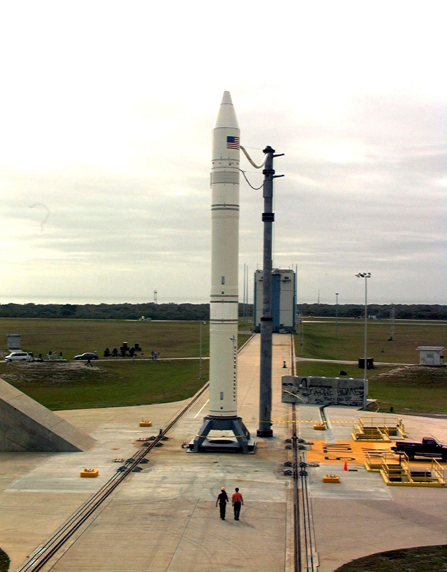 NASA’s Lunar Prospector is readied for launch as its gantry-like service tower is rolled back again at Cape Canaveral Air Station’s Launch Complex 46. The launch, previously scheduled for Jan. 5, was postponed one day due to a problem with a range safety radar located at Patrick Air Force Base, Fla. Lunar Prospector, built for the NASA Ames Research Center by Lockheed Martin, is a spin-stabilized spacecraft designed to provide NASA with the first global maps of the Moon’s surface and its gravitational magnetic fields, as well as look for the possible presence of ice near the lunar poles. It will orbit the Moon at an altitude of approximately 63 miles during a one-year mission. The launch of Lunar Prospector is now scheduled for Jan. 6, 1998 at 9:28 p.m. EST