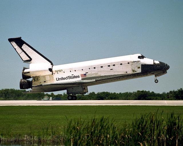 The orbiter Columbia approaches touchdown on Runway 33 of KSC's Shuttle Landing Facility to complete the nearly 16-day STS-90 mission. Main gear touchdown was at 12:08:59 p.m. EDT on May 3, 1998, landing on orbit 256 of the mission. The wheels stopped at 12:09:58 EDT, completing a total mission time of 15 days, 21 hours, 50 minutes and 58 seconds. The 90th Shuttle mission was Columbia's 13th landing at the space center and the 43rd KSC landing in the history of the Space Shuttle program. During the mission, the crew conducted research to contribute to a better understanding of the human nervous system. The crew of the STS-90 Neurolab mission include Commander Richard Searfoss; Pilot Scott Altman; Mission Specialists Richard Linnehan, D.V.M., Dafydd (Dave) Williams, M.D., with the Canadian Space Agency, and Kathryn (Kay) Hire; and Payload Specialists Jay Buckey, M.D., and James Pawelczyk, Ph.D