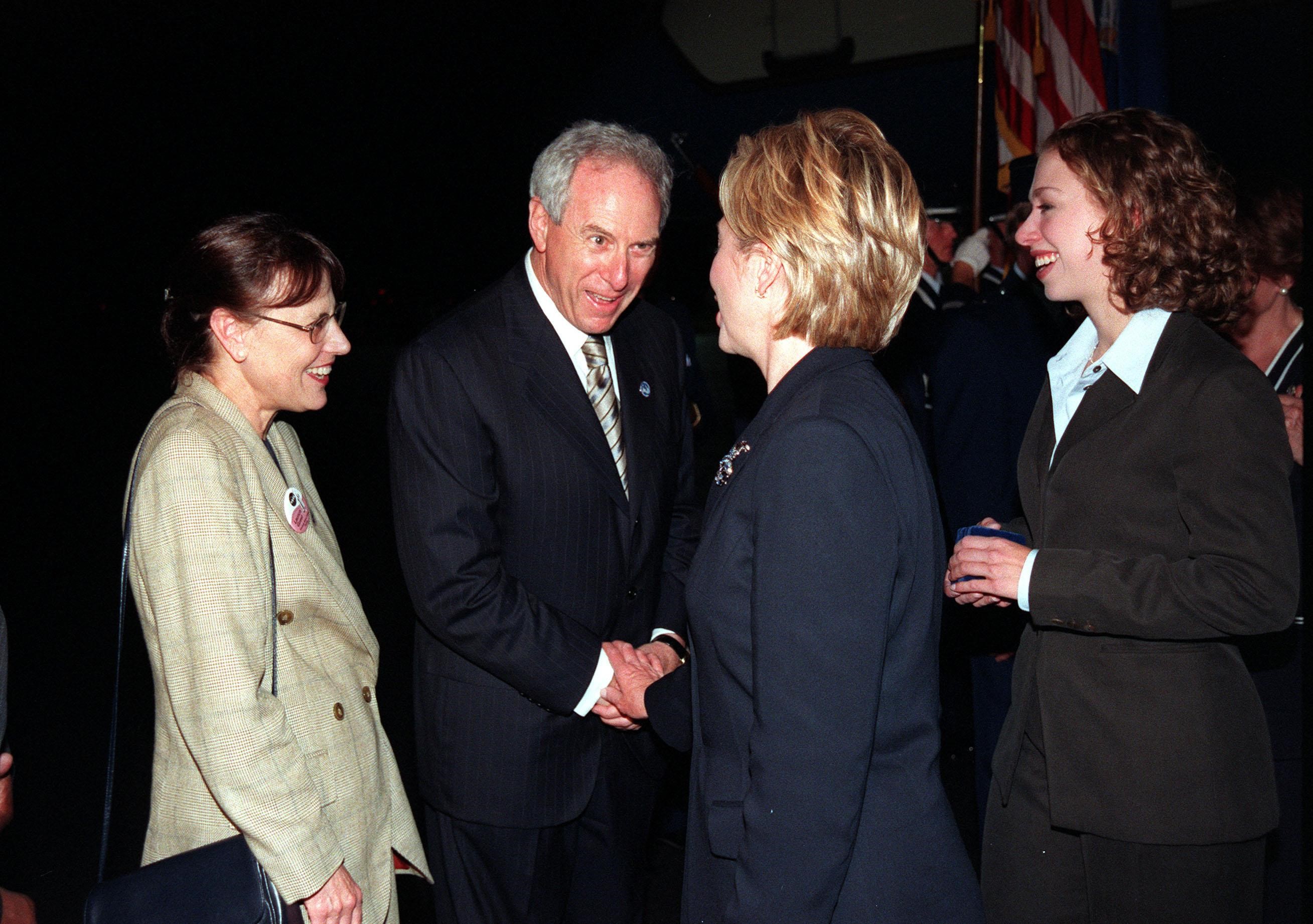 Upon their arrival at the Skid Strip at Cape Canaveral Air Station, First Lady Hillary Rodham Clinton and her daughter, Chelsea, are greeted by NASA Administrator Daniel S. Goldin and Mrs. Goldin. Mrs. Clinton and Chelsea are here to view the launch of Space Shuttle mission STS-93, scheduled for 12:36 a.m. EDT July 20. Much attention has been generated over the launch due to Commander Eileen M. Collins, the first woman to serve as commander of a Shuttle mission. The primary payload of the five-day mission is the Chandra X-ray Observatory, which will allow scientists from around the world to study some of the most distant, powerful and dynamic objects in the universe. The new telescope is 20 to 50 times more sensitive than any previous X-ray telescope and is expected to unlock the secrets of supernovae, quasars and black holes