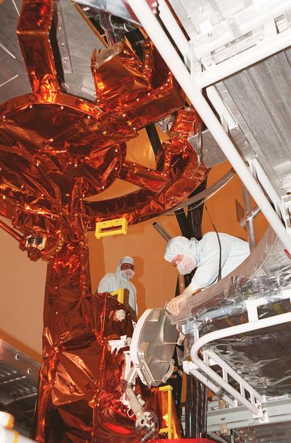 During a Crew Equipment Interface Test (CEIT), members of the STS-103 crew check out a portable foot restraint on the Flight Support System that will be used on the mission, repairing the Hubble Space Telescope. The seven-member crew comprises Commander Curtis L. Brown Jr., Pilot Scott J. Kelly, and Mission Specialists Steven L. Smith, C. Michael Foale (Ph.D.), John M. Grunsfeld (Ph.D), Claude Nicollier of Switzerland, and Jean-François Clervoy of France. Nicollier and Clervoy are with the European Space Agency. Mission STS-103 is a "call-up" due to the need to replace portions of the pointing system, the gyros, which have begun to fail on the Hubble Space Telescope. Although Hubble is operating normally and conducting its scientific observations, only three of its six gyroscopes are working properly. The gyroscopes allow the telescope to point at stars, galaxies and planets. The STS-103 crew will not only replace gyroscopes, it will also replace a Fine Guidance Sensor and an older computer with a new enhanced model, an older data tape recorder with a solid-state digital recorder, a failed spare transmitter with a new one, and degraded insulation on the telescope with new thermal insulation. The crew will also install a Battery Voltage/Temperature Improvement Kit to protect the spacecraft batteries from overcharging and overheating when the telescope goes into a safe mode. The scheduled launch date in October is under review