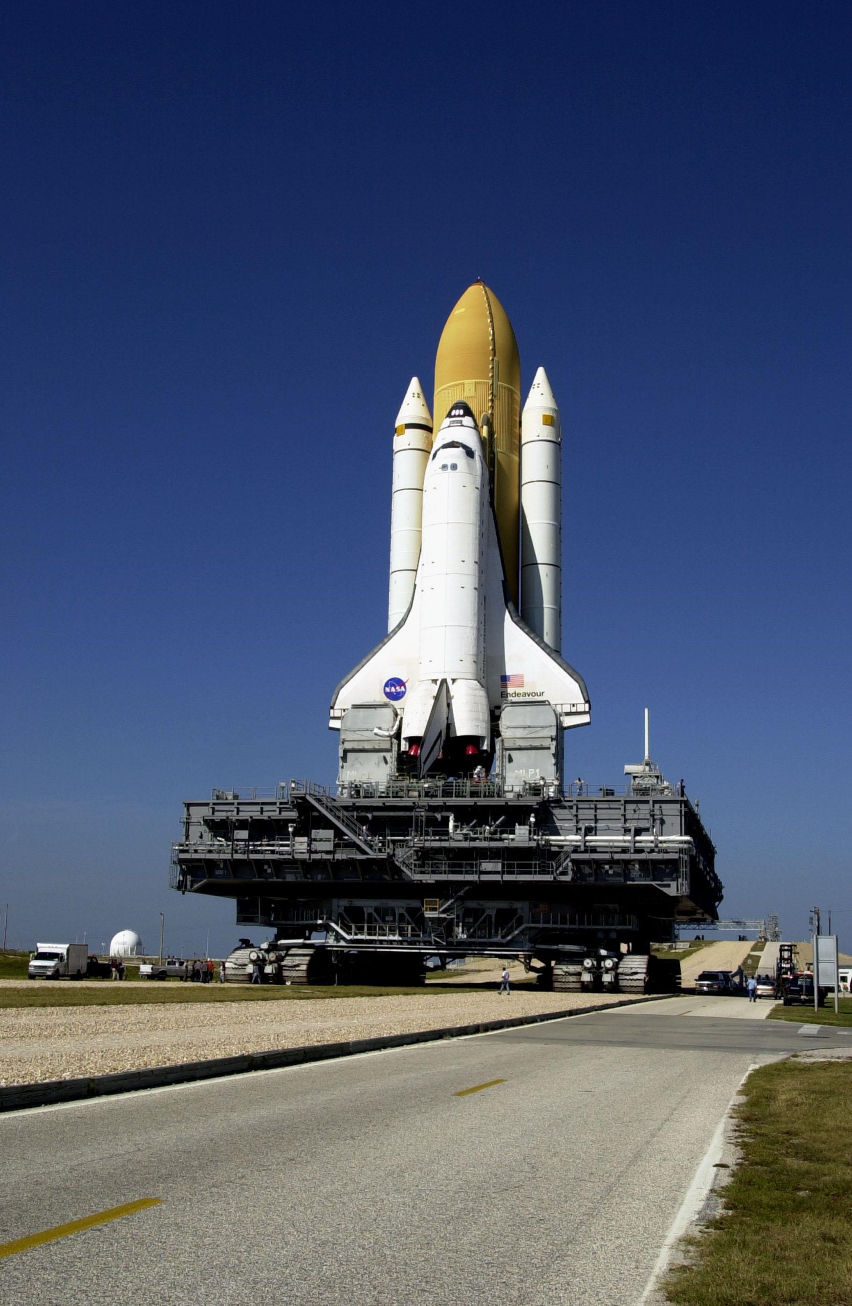 KENNEDY SPACE CENTER, Fla. -- Space Shuttle Endeavour is again on level ground after its backward trek from Launch Pad 39B. A broken cleat on the crawler-transporter forced the reverse movement so the cleat could be repaired before moving up the incline to the top of the pad. Endeavour is scheduled to be launched Nov. 30 at 10:01 p.m. EST on mission STS-97, the sixth construction flight to the International Space Station. Its payload includes the P6 Integrated Truss Structure and a photovoltaic (PV) module, with giant solar arrays that will provide power to the Station. The mission includes two spacewalks to complete the solar array connections