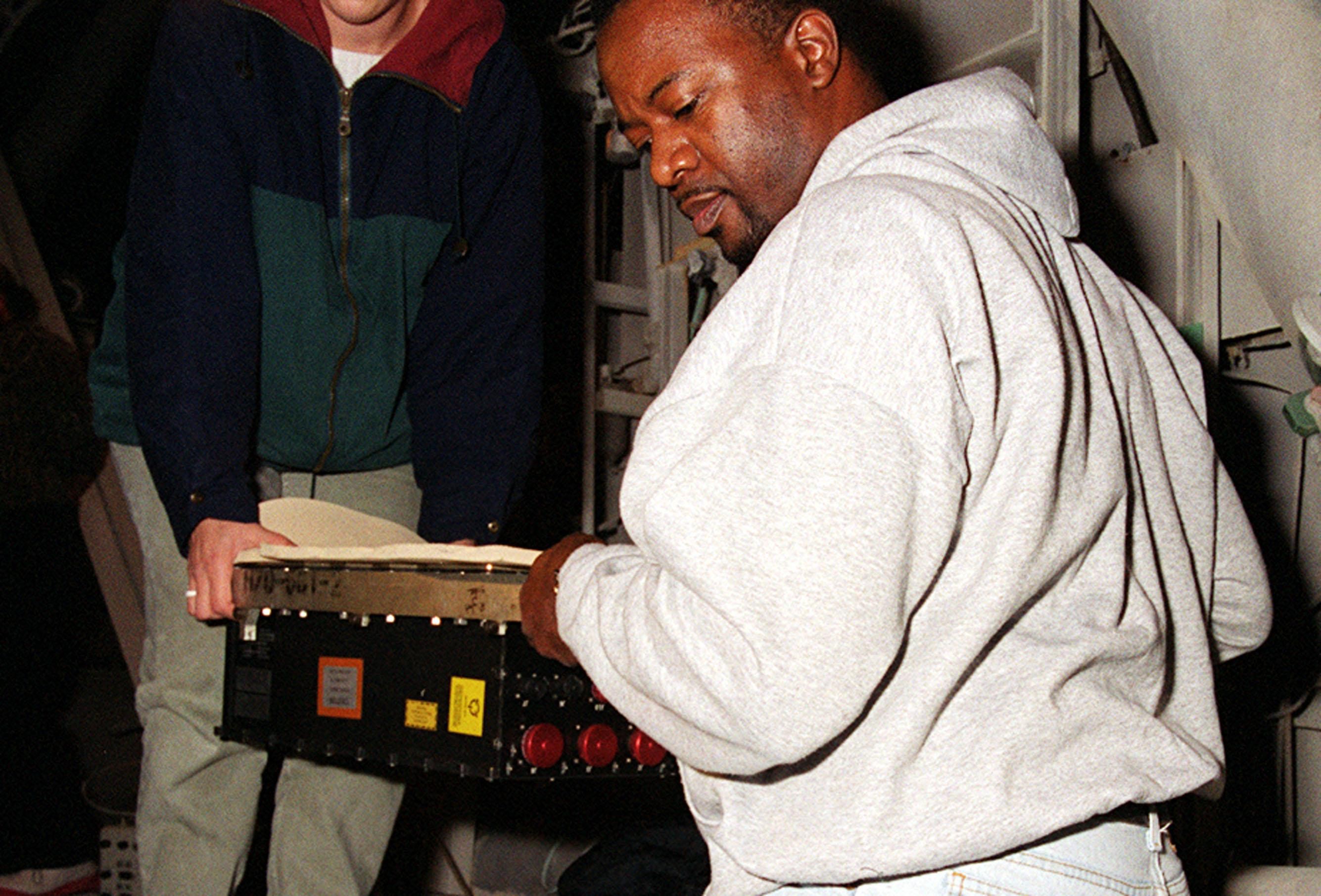 KENNEDY SPACE CENTER, FLA. -- Workers carry the replacement Enhanced Main Events Controller (E-MEC) to Shuttle Endeavour at Launch Pad 39A for installation in the aft compartment of the payload bay. The original E-MEC became suspect during the Jan. 31 launch countdown and mission STS-99 was delayed when NASA managers decided to replace it. Each Shuttle carries two enhanced master events controllers (E-MECs), which provide relays for onboard flight computers to send signals to arm and fire pyrotechnics that separate the solid rockets and external tank during assent. Both E-MECs are needed for the Shuttle to be cleared for flight. Currently Endeavour and Columbia are the only two orbiters with the E-MECs. Built by Rockwell's Satellite Space Electronics Division, Anaheim, Calif., each unit weighs 65 pounds and is approximately 20 inches long, 13 inches wide and 8 inches tall. Previously, three Shuttle flights have been scrubbed or delayed due to faulty MECs: STS-73, STS-49 and STS-41-D. The next scheduled date for launch of STS-99 is Feb. 11 at 12:30 p.m. EST