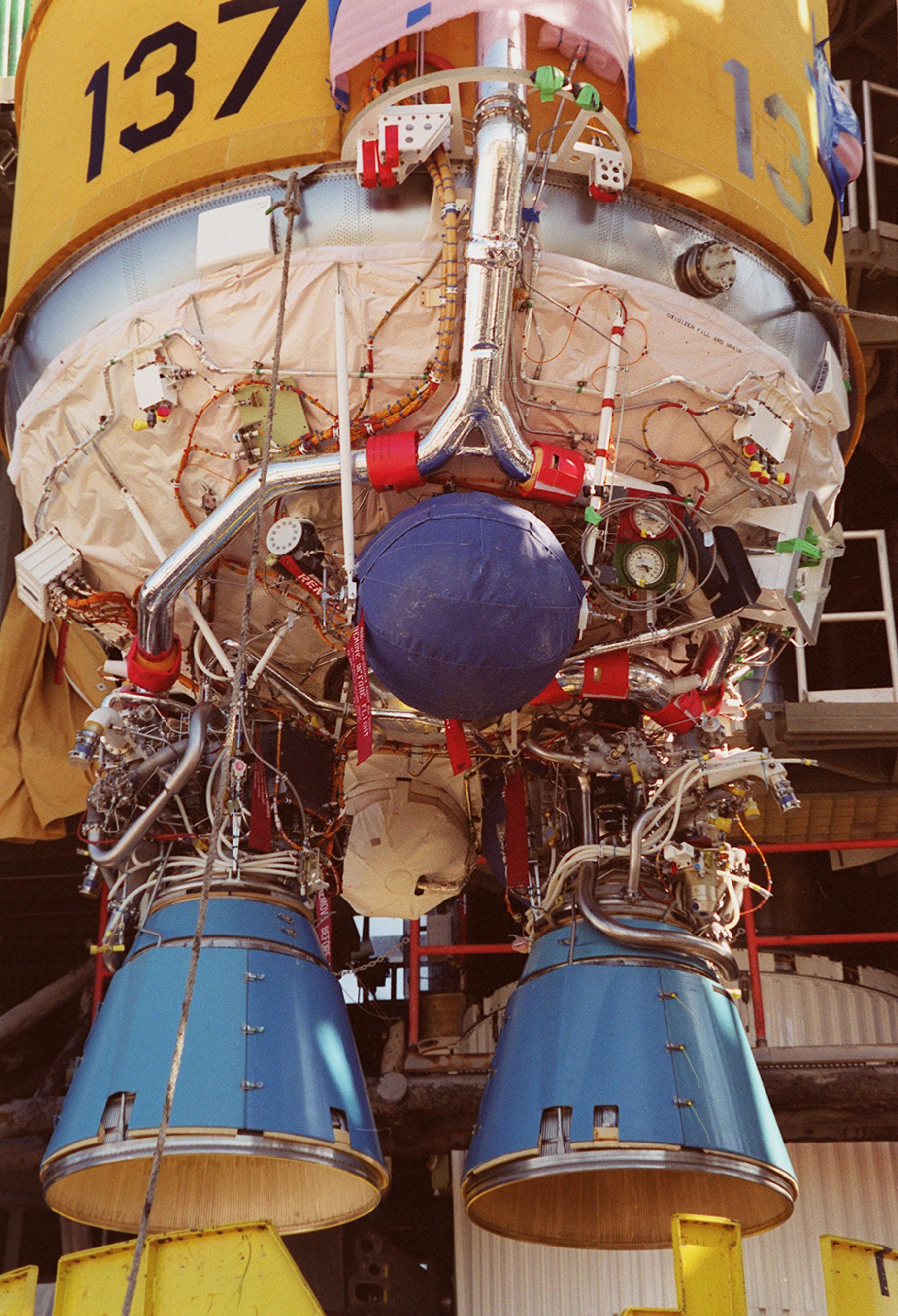 At launch pad 36-A, Cape Canaveral Air Force Station, the second stage of an Atlas II/Centaur rocket is lifted up the gantry (behind it) for mating with the first stage. Atlas II is designed to launch payloads into low earth orbit, geosynchronous transfer orbit or geosynchronous orbit. The rocket is the launch vehicle for the GOES-L satellite, part of the NOAA National Weather Service system in weather imagery and atmospheric sounding information. The primary objective of the GOES-L is to provide a full capability satellite in an on-orbit storage condition, to assure NOAA continuity in services from a two-satellite constellation. Launch services are being provided by the 45th Space Wing