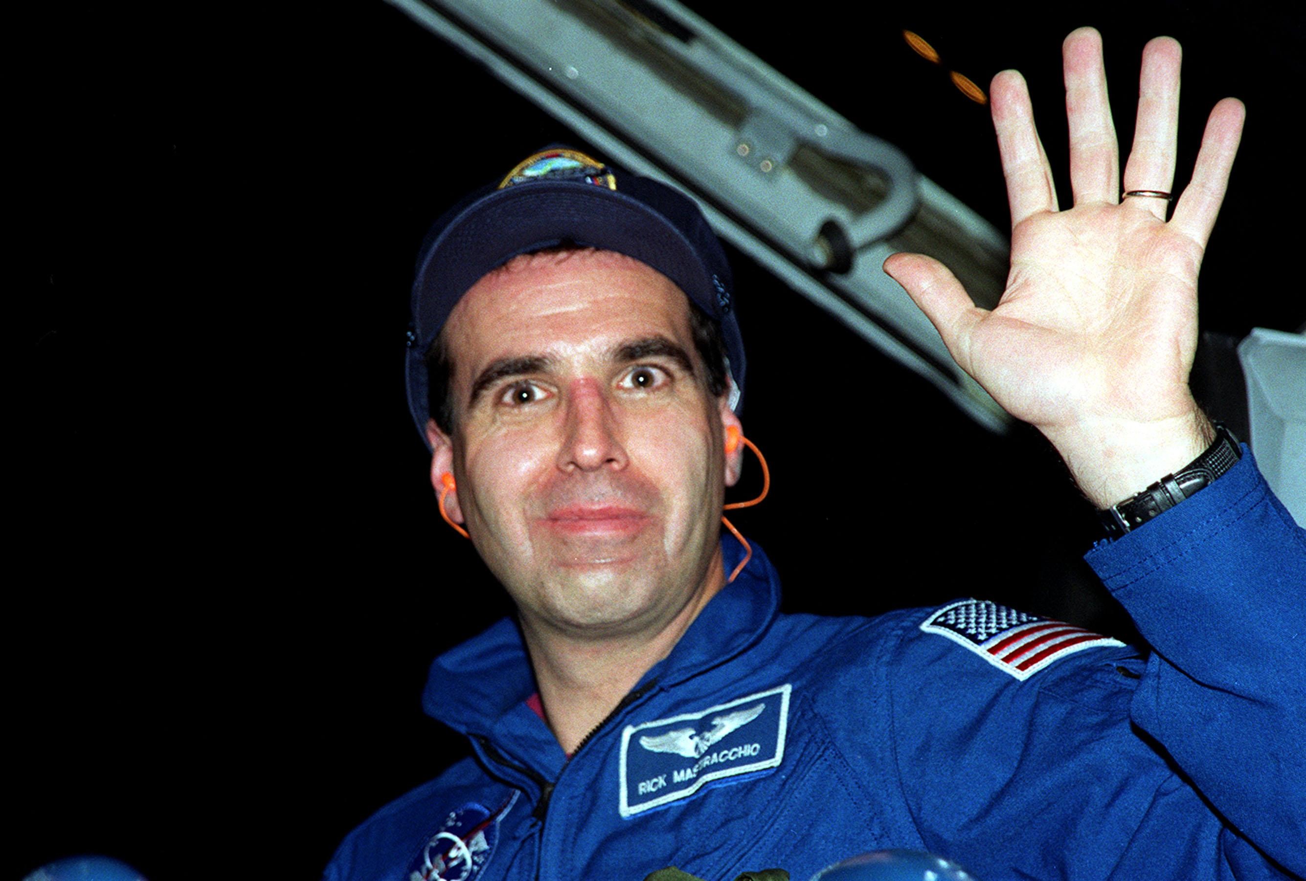 STS-106 Mission Specialist Richard A. Mastracchio waves at the camera upon his arrival at the KSC Shuttle Landing Facility. He and the rest of the crew will be making pre-launch preparations for the fourth flight to the International Space Station. STS-106 is scheduled to launch Sept. 8, 2000, at 8:45 a.m. EDT from Launch Pad 39B. On the 11-day mission, the seven-member crew will perform support tasks on orbit, transfer supplies and prepare the living quarters in the newly arrived Zvezda Service Module. The first long-duration crew, dubbed “Expedition One,” is due to arrive at the Station in late fall