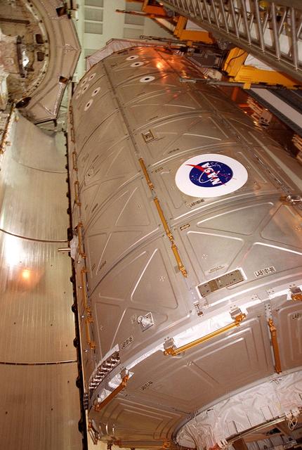 The U.S. Lab Destiny begins moving out of Atlantis’ payload bay and into the Payload Changeout Room via the Payload Ground Handling Mechanism. Destiny will remain in the PCR while Atlantis rolls back to the Vehicle Assembly Building to allow workers to conduct inspections, continuity checks and X-ray analysis on the 36 solid rocket booster cables located inside each booster’s system tunnel. An extensive evaluation of NASA’s SRB cable inventory revealed conductor damage in four (of about 200) cables on the shelf. Shuttle managers decided to prove the integrity of the system tunnel cables already on Atlantis