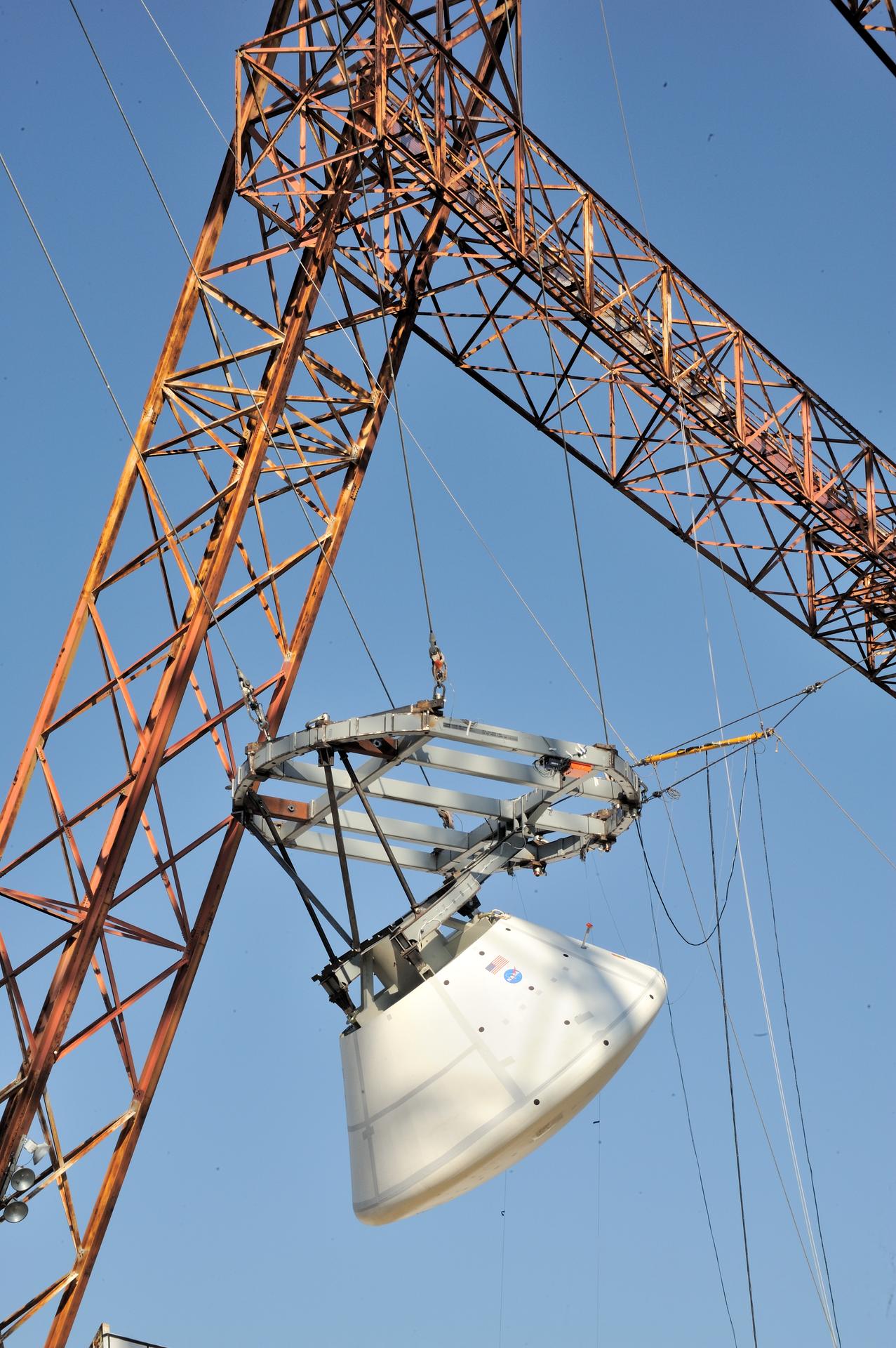 ORION Project-(SPLASH) Structural Passive Landing Attenuation for Survivability of Human Crew (BTA) Boiler Plate Test Article Water Impact Test-Pot Phase"0" Test Tested at the Hydro Impact Basin at the Landing and Impact Research Facility (Gantry)