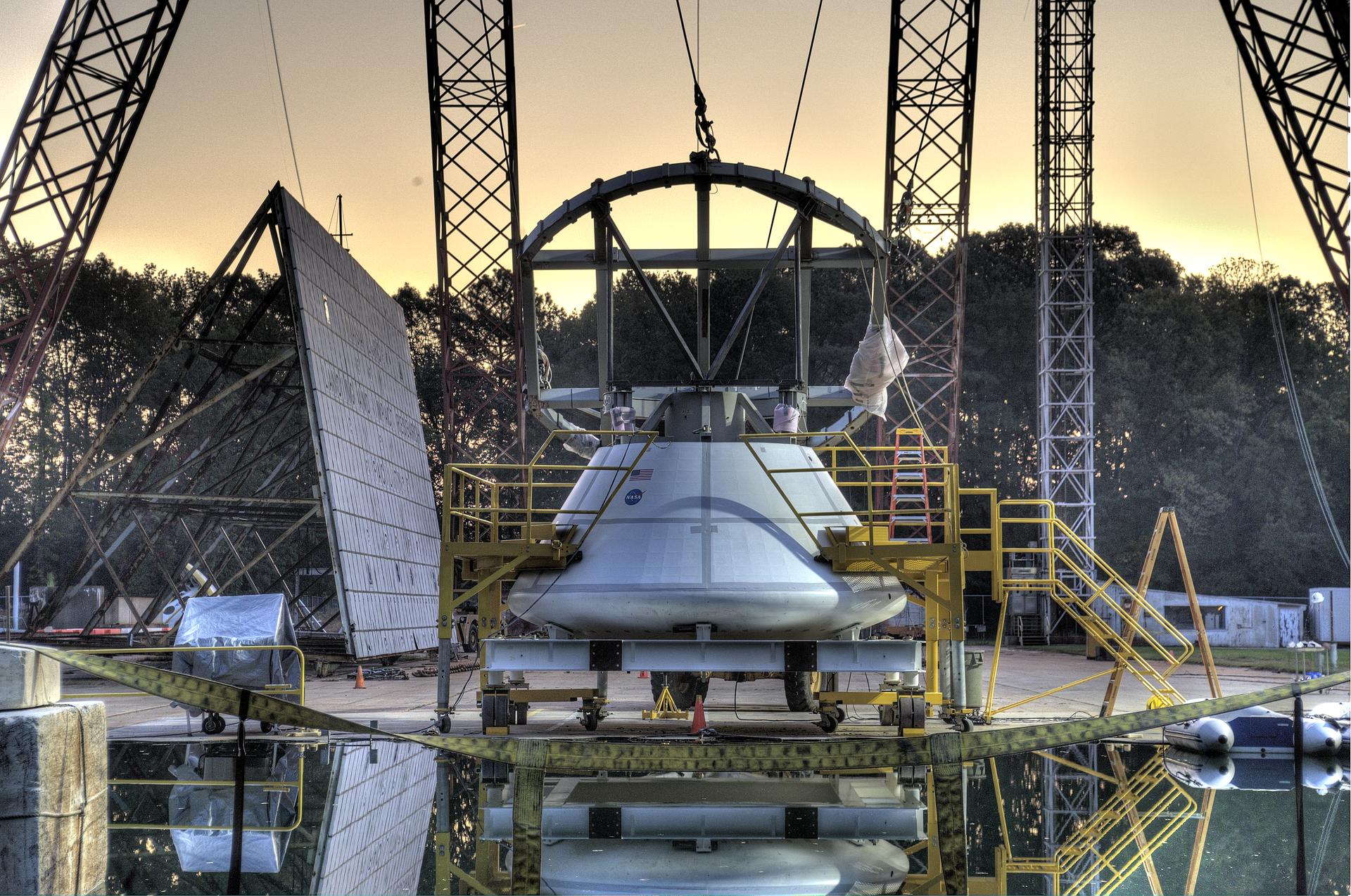 ORION Project-(SPLASH) Structural Passive Landing Attenuation for Survivability of Human Crew (BTA) Boiler Plate Test Article Water Impact Test-Pot Phase"0" Test Tested at the Hydro Impact Basin at the Landing and Impact Research Facility (Gantry)