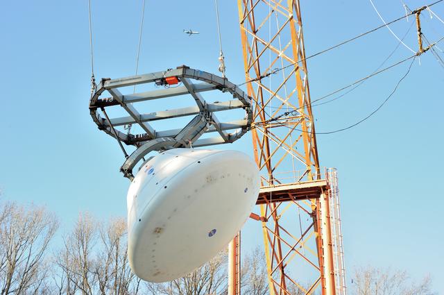 ORION Project-(SPLASH) Structural Passive Landing Attenuation for Survivability of Human Crew (BTA) Boiler Plate Test Article Water Impact Test-PIT Test-2 Tested at the Hydro Impact Basin at the Landing and Impact Research Facility (Gantry)